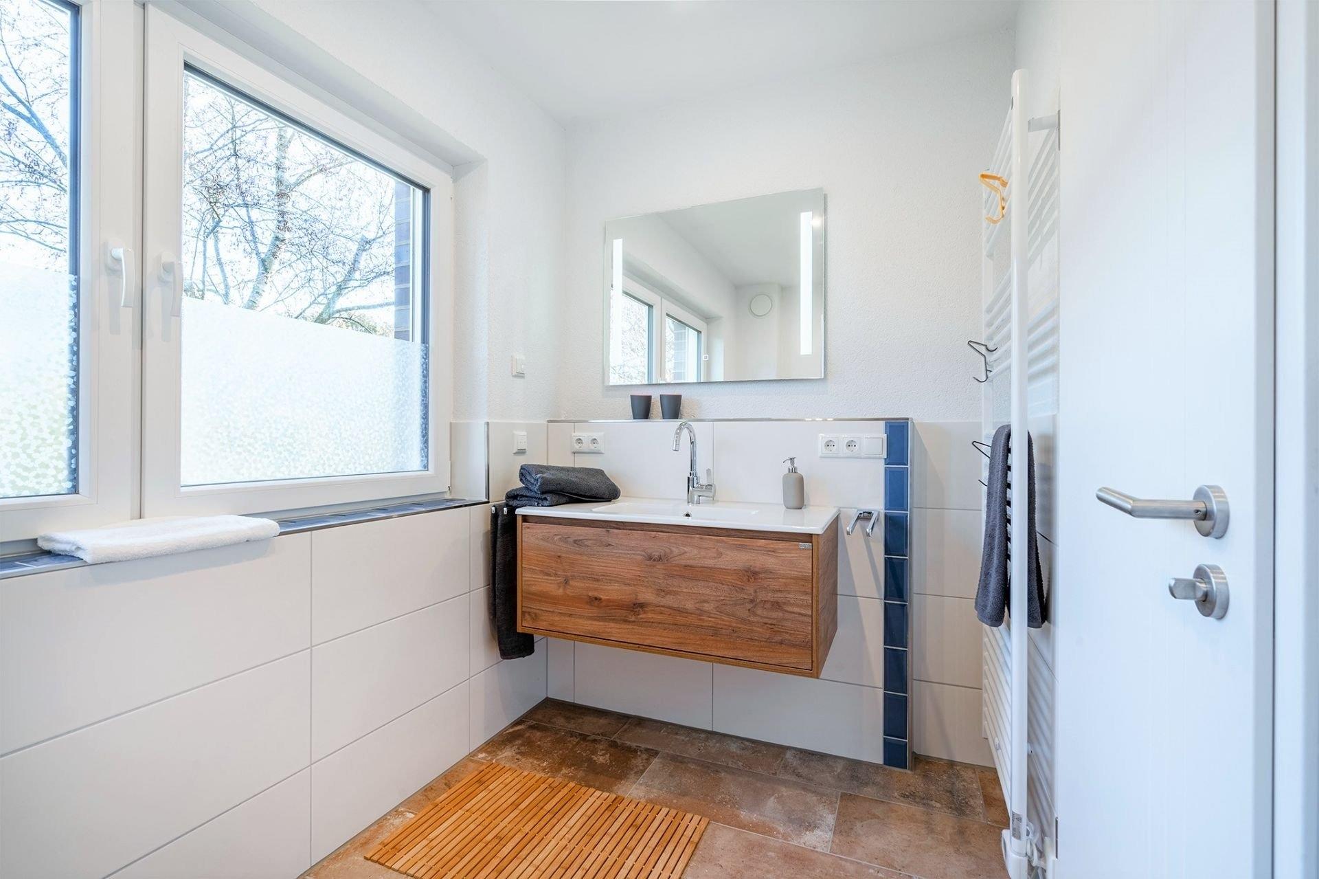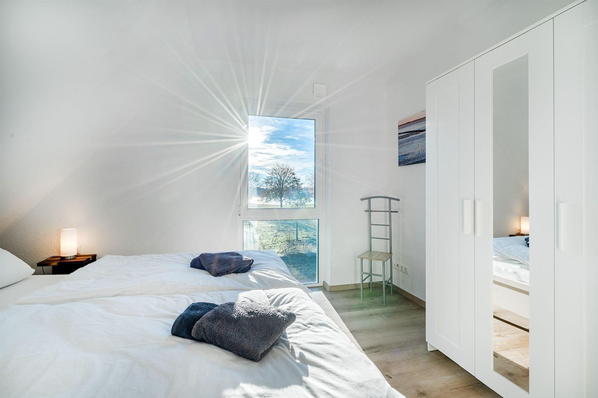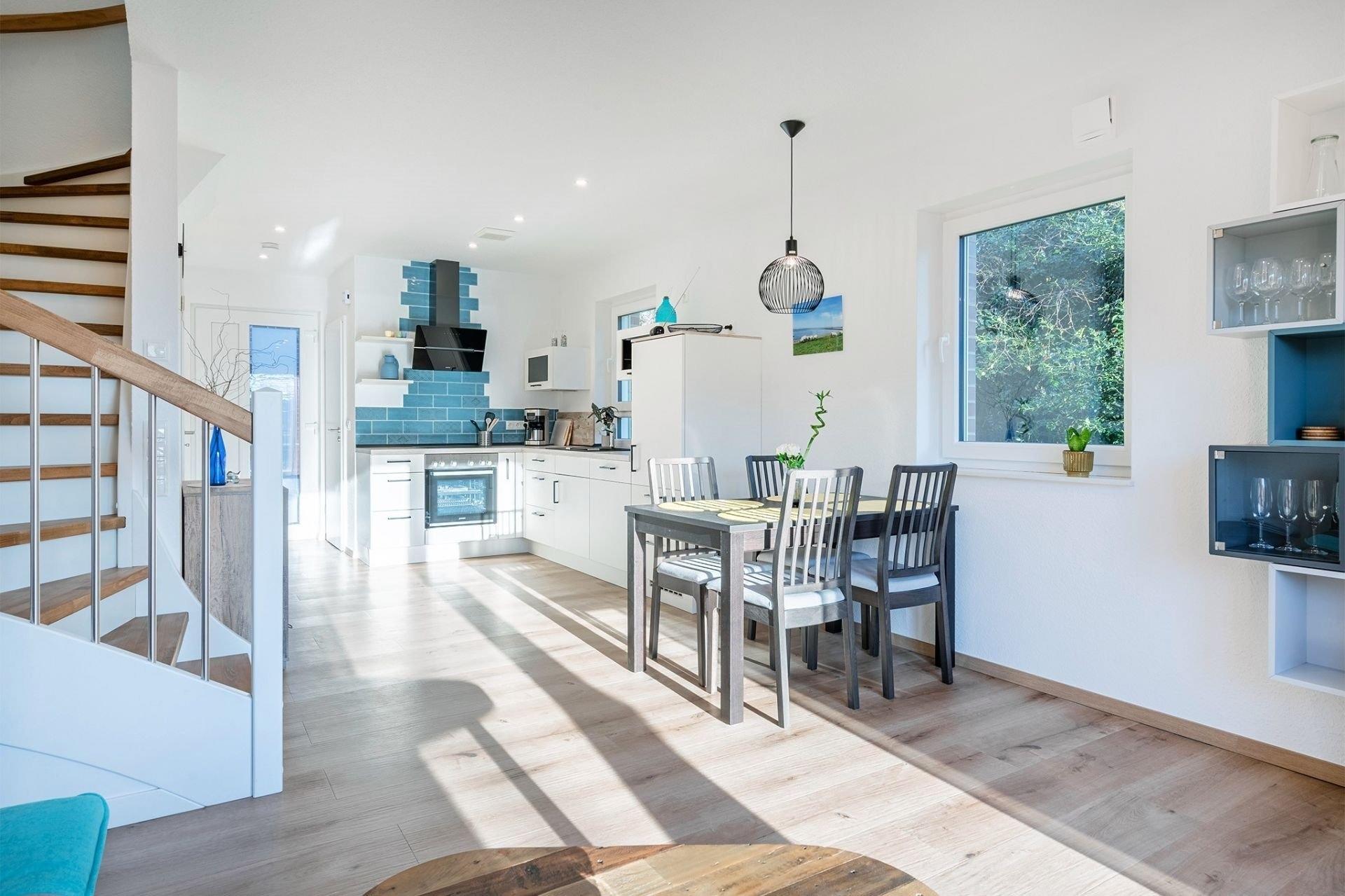 Doppelhaus direkt am Badesee Aurich-Tannenhausen.Das modern und liebevoll eingerichtete Doppelhaus Nitschke - FeWo Watt bietet die Möglichkeit, im Herzen Ostfrieslands Ihren Urlaub zu genießen. Die Ferienwohnung in einer unserer beiden in 2022 neu gebauten Doppelhäusern liegt direkt am idyllischen Badesee in Aurich-Tannenhausen. Jede Doppelhaushälfte verfügt über ~60 m² Wohnfläche und bietet Platz für bis zu vier Personen. Das offengestaltete Erdgeschoss mit Koch-/ Wohn- und Essbereich sowie die daran anschließende Terrasse mit direktem Seeblick laden zum Wohlfühlen ein. Im Obergeschoss befinden sich zwei gemütliche Schlafzimmer und ein großes Tageslichtbad mit begehbarer Dusche, Waschbecken und WC. Parkplatz für PKW ist direkt am Haus. Größere Familien dürfen gerne beide Doppelhaushälften zusammen reservieren.