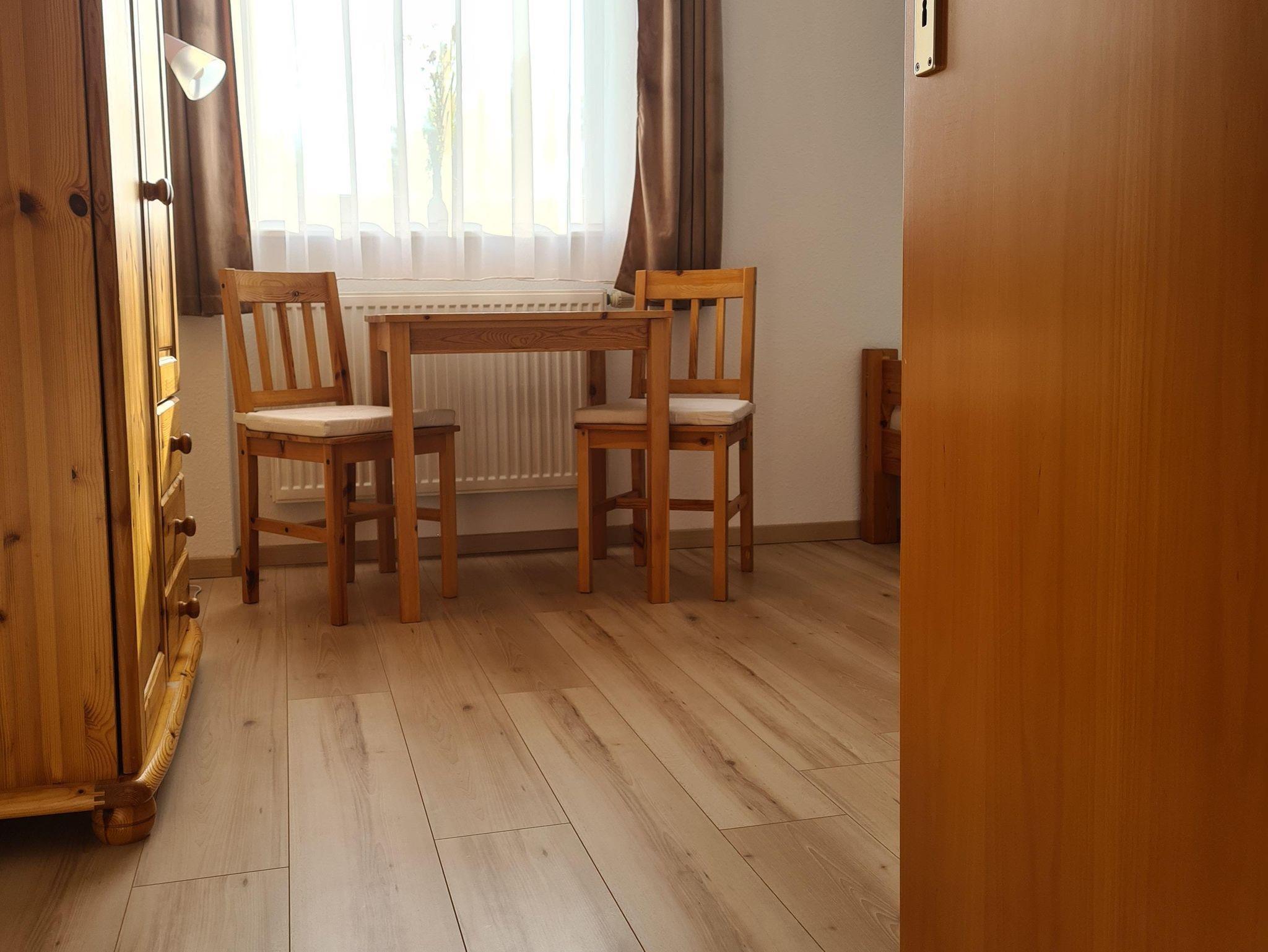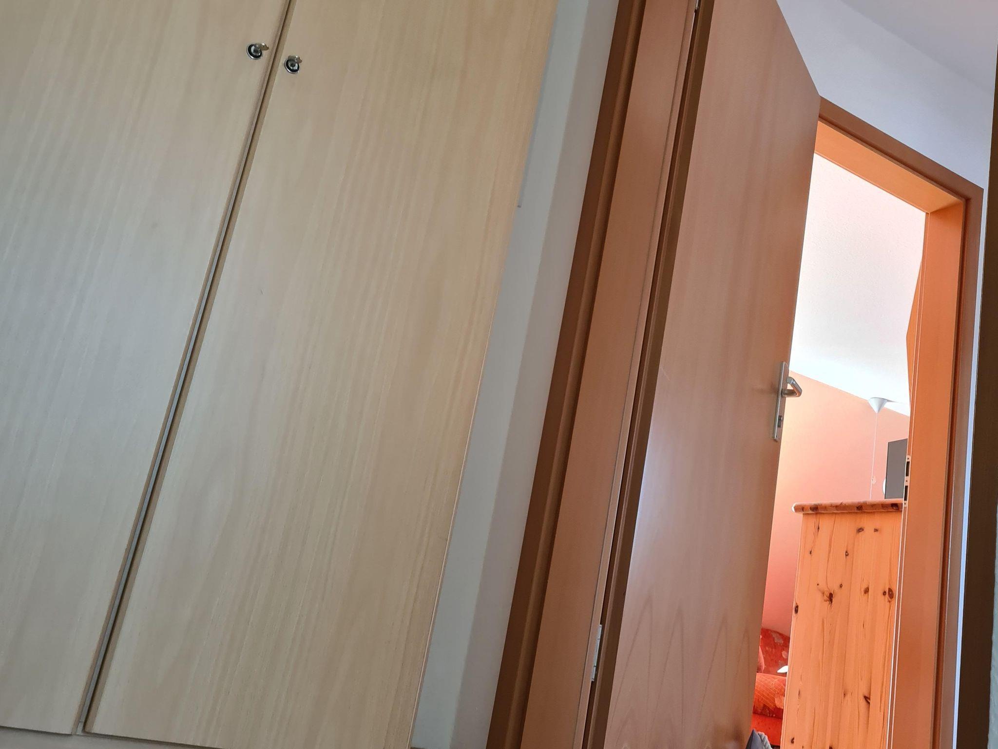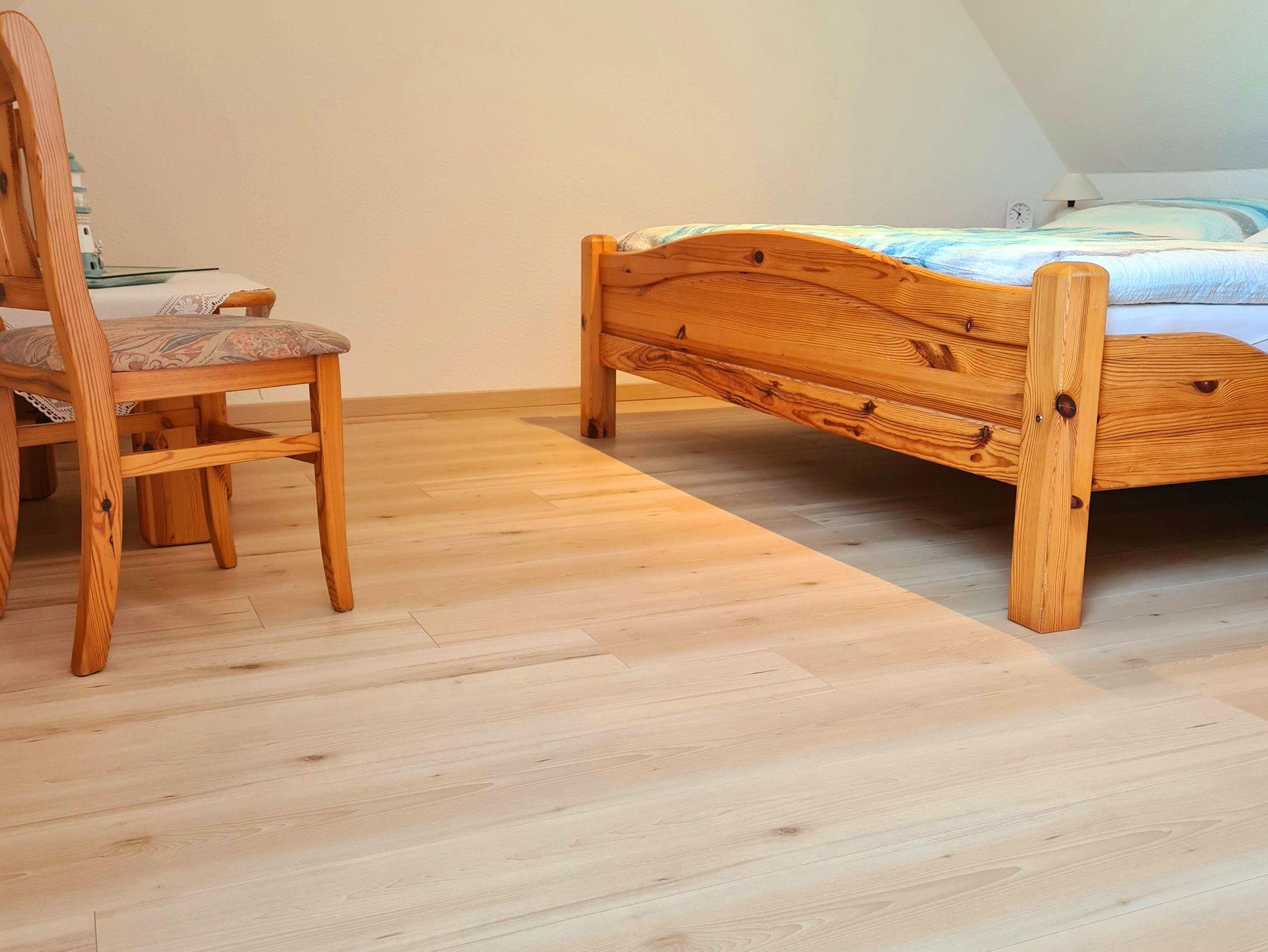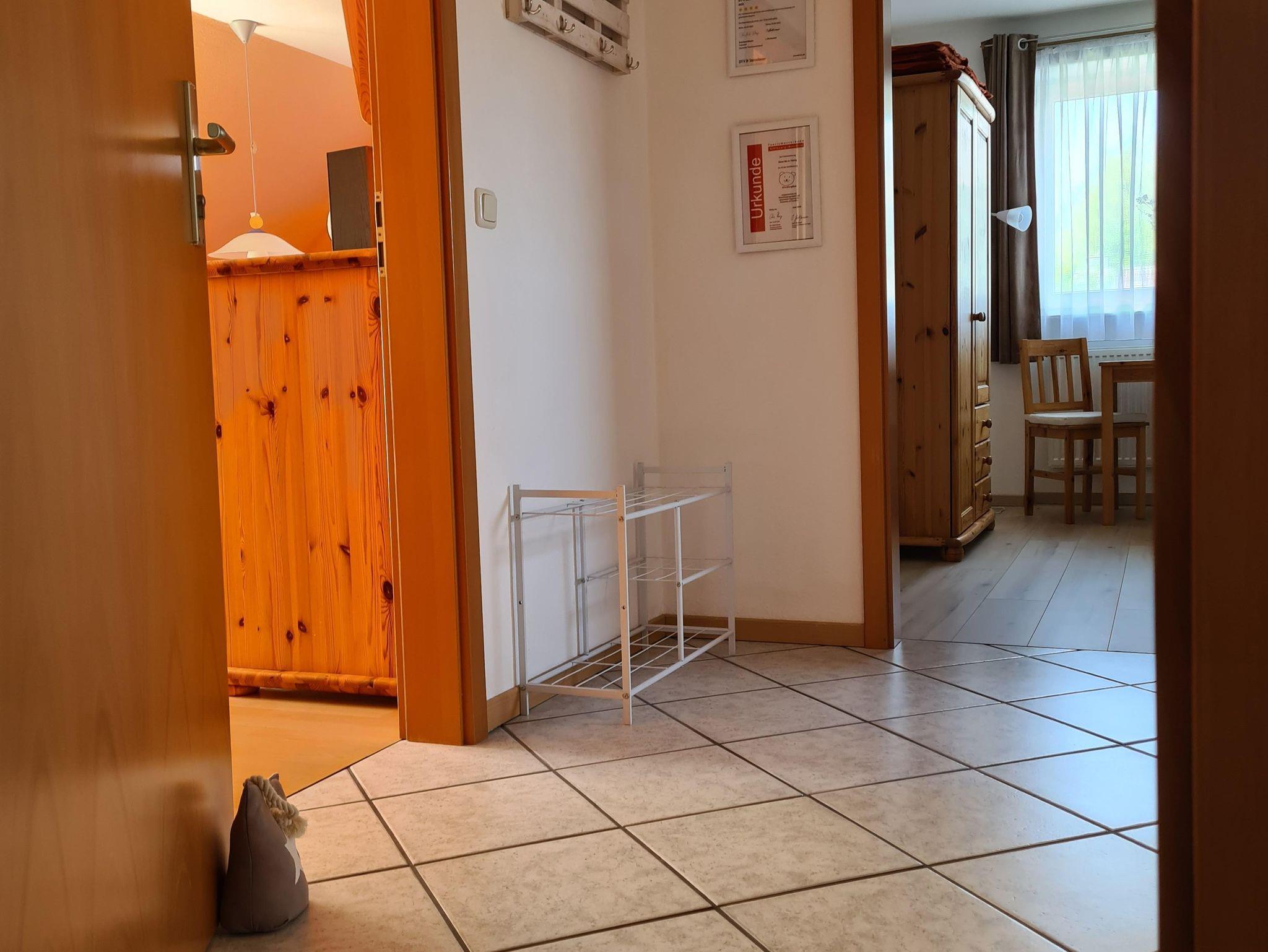Unsere 70 qm große Ferienwohnung liegt im ersten Obergeschoss unseres Einfamilienhauses und bietet Ihnen einen nach Süden gelegenen möbilierten Balkon.