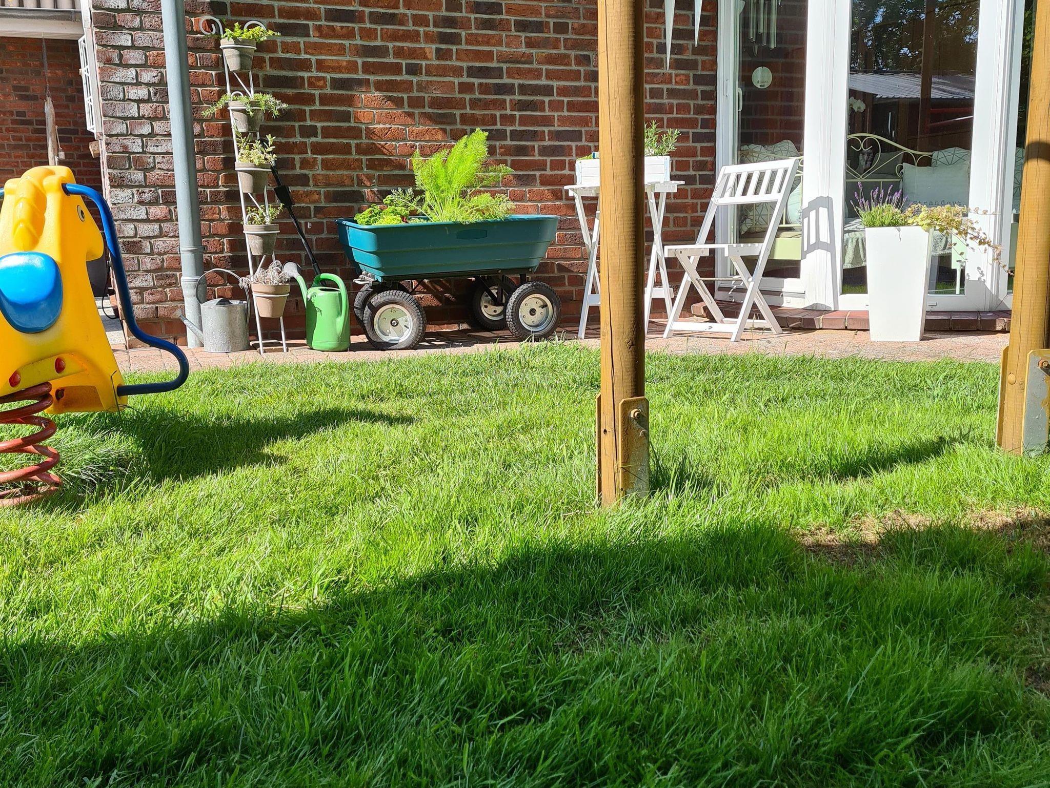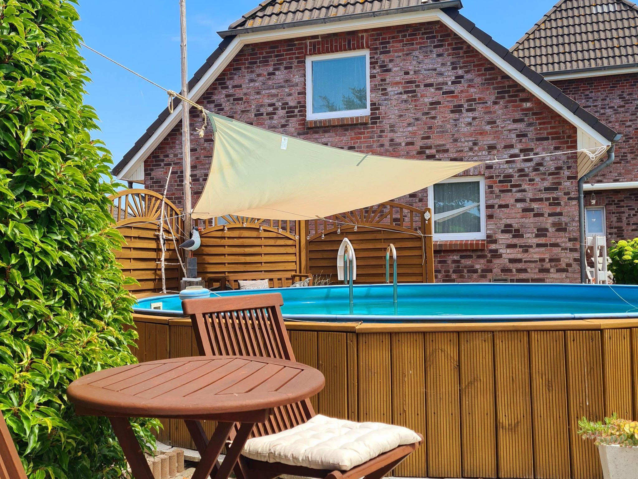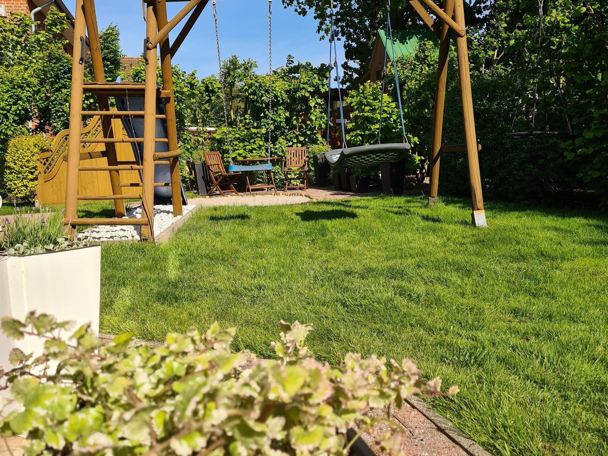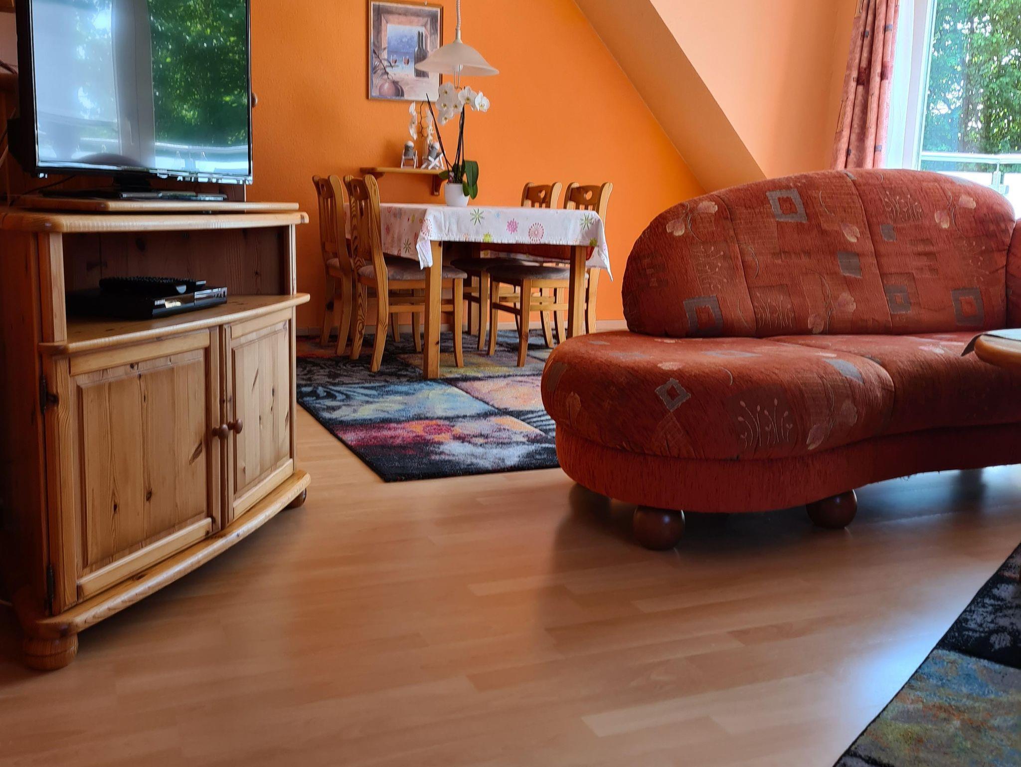 Unsere 70 qm große Ferienwohnung liegt im ersten Obergeschoss unseres Einfamilienhauses und bietet Ihnen einen nach Süden gelegenen möbilierten Balkon.