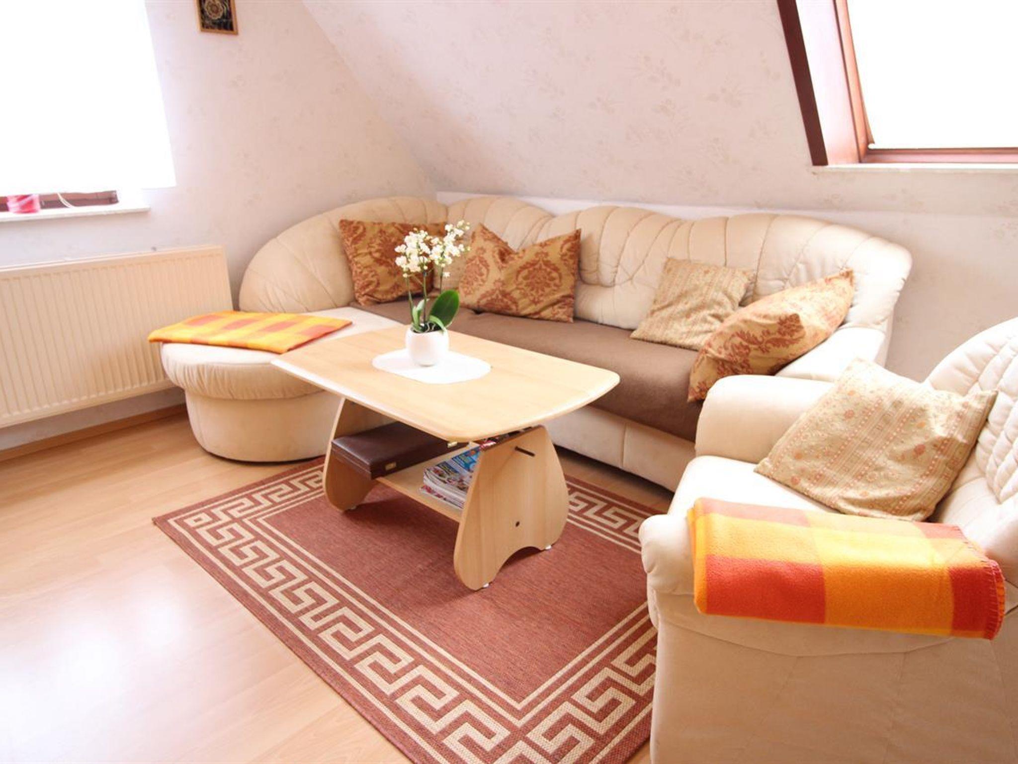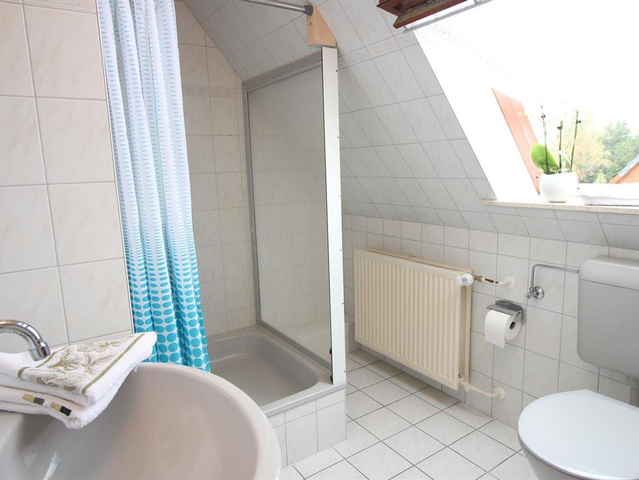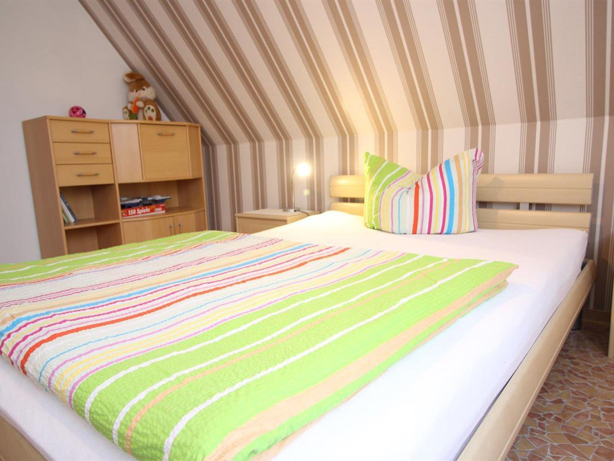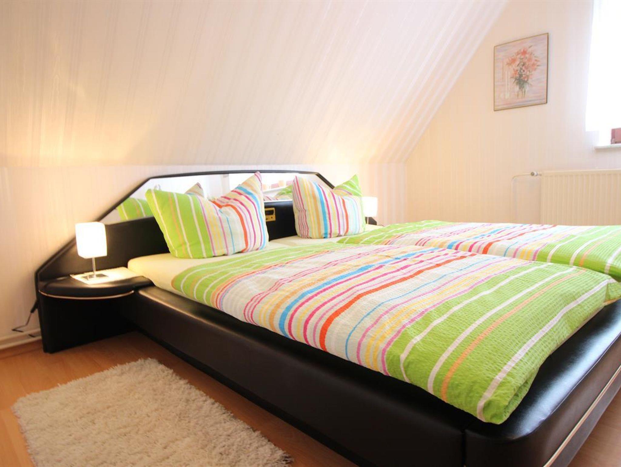 Ferienwohnung mit einer Größe von ca. 40 qm für bis zu 3 Personen, im Obergeschoss eines Familenhauses. Ausgestattet mit einem Wohnraum mit Sitzgruppe u. SAT-TV, Schlafzimmer mit Doppelbett, ein weiteres Schlafzimmer mit einen Einzelbett (Breite 1,40 m). Separate komplett ausgestattet Küche. Helles, freundliches Tageslichtbad mit Dusche und WC.