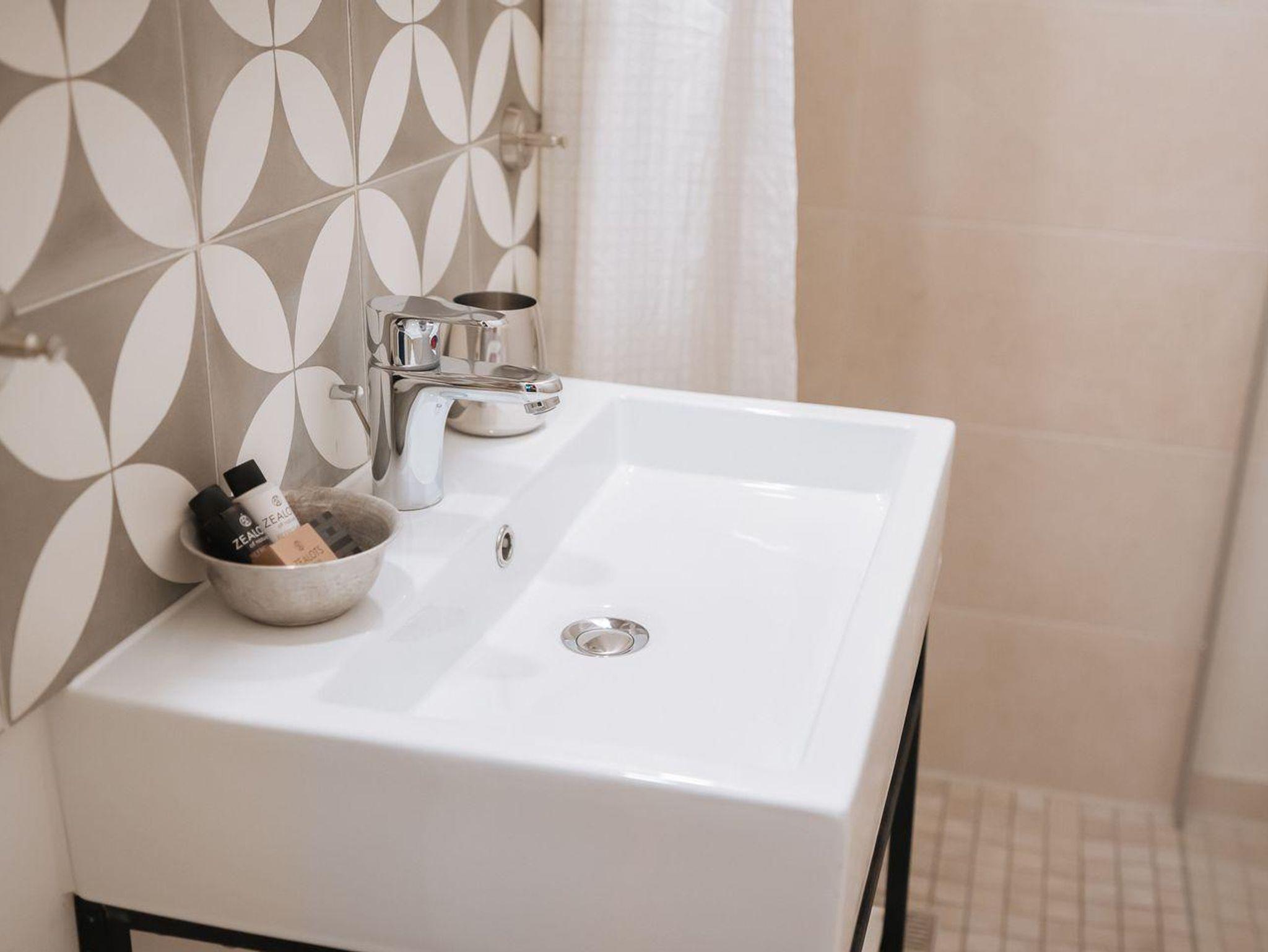 Die offene Küche zum Wohnzimmer ist funktional ausgestattet und eignet sich bestens für die Selbstversorgung: Ceranherd, Backofen, Kühlschrank mit Gefrierfach, Spülmaschine, Kaffeemaschine, Wasserkocher, Toaster, Mixer und umfassende Küchenutensilien runden die Ausstattung ab. Das Badezimmer bietet eine bodengleiche Dusche, WC, Waschbecken, Spiegel und Haartrockner.