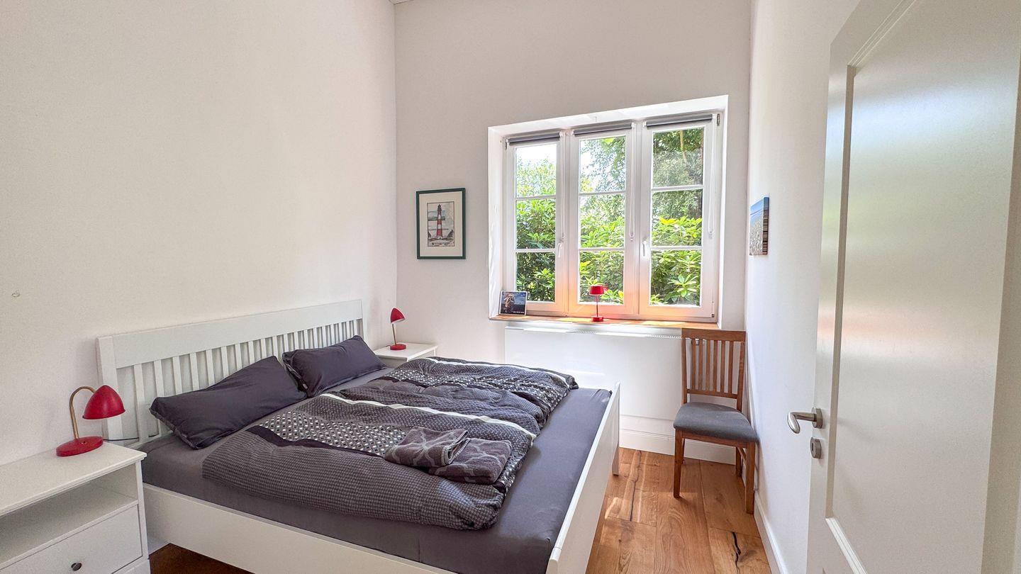 Der Garten zur Straße hin bietet einen Rückzugsort unter einer alten Kastanie, einer seltenen Elsbeere und einem großen Walnussbaum. Hier genießen Sie eine „Coolcation“ im Grünen, fernab der prallen Sonne – ideal für entspannte Stunden mit einem Buch oder geselligen Abenden bei einem Glas Wein. Lassen Sie sich im Frühjahr von der Krokuswiese und den Osterglocken verzaubern oder genießen Sie die blühenden Rhododendren im Mai.