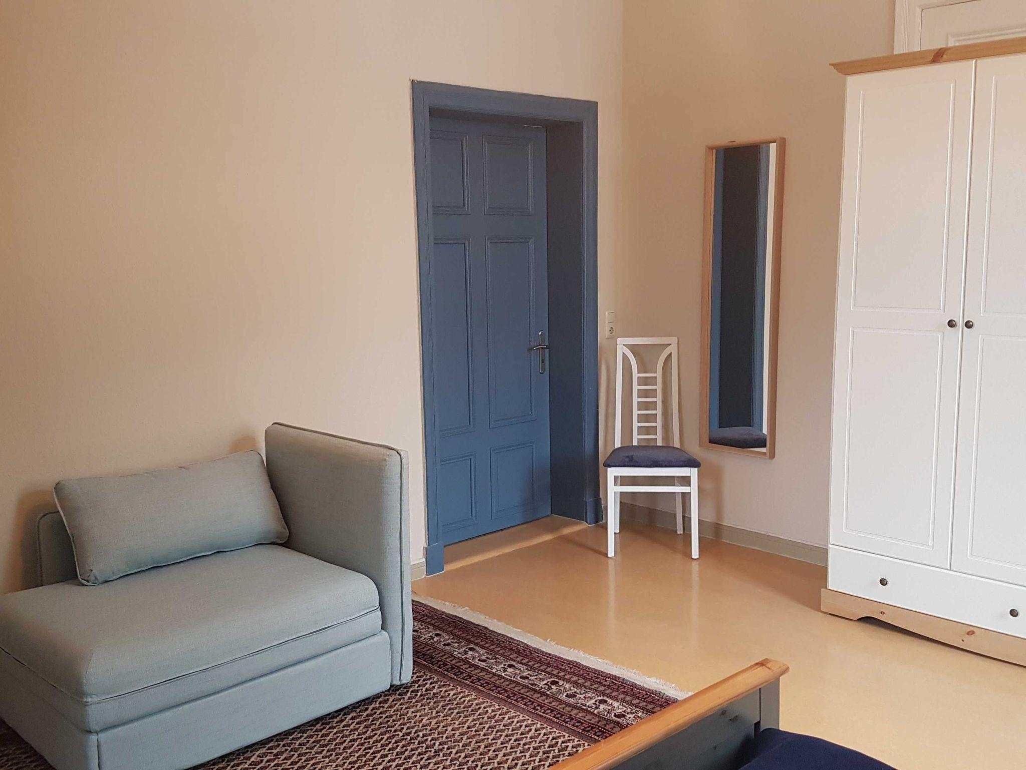 Die Ferienwohnung befindet sich im Erdgeschoss der Moltke-Villa. Große, helle Räume bieten viel Platz zur Entspannung im Urlaub oder nach einem langen Arbeitstag. Die Wohnung verfügt über einen gemütlichen Wohnraum mit separater Leseecke. Die Couch lässt sich zu einem Schlafsofa umfunktionieren, so dass auch bei Belegung mit zwei oder mehreren Personen in separaten Räumen übernachtet werden kann. Das Schlafzimmer ist mit einem Doppelbett ausgestattet. Auf Wunsch kann ein Schlafsessel mit wenigen Handgriffen zu einer vollwertigen Aufbettung umgebaut werden.