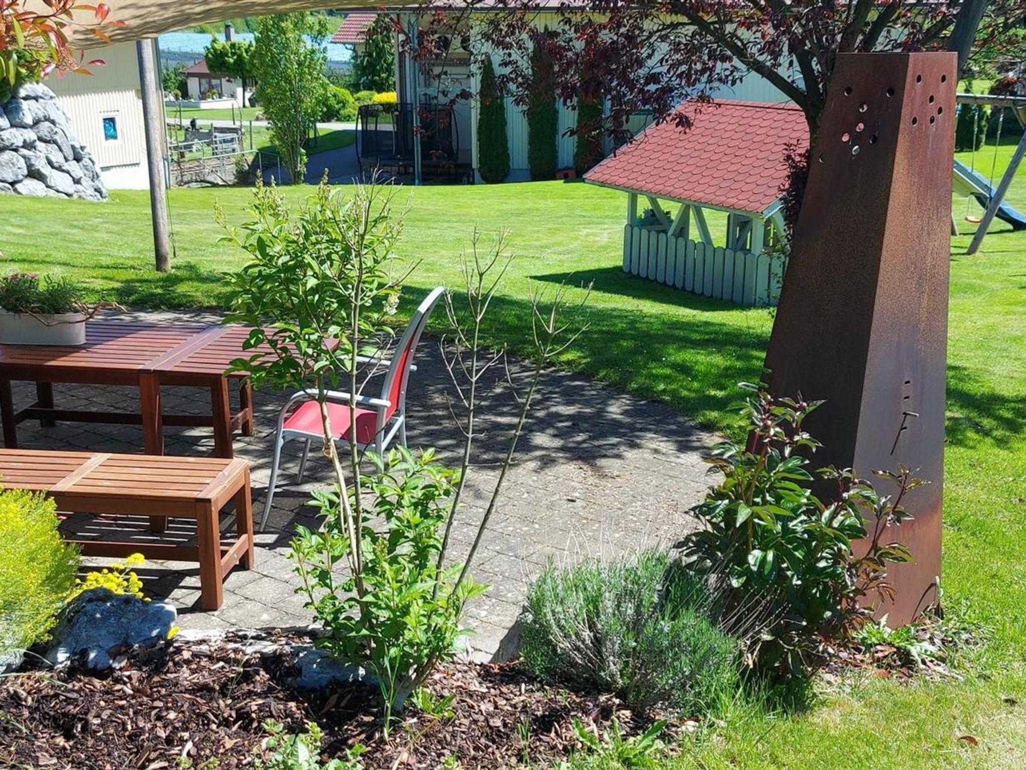 Genießen Sie Ihren Urlaub in idyllischer und ruhiger Umgebung, nur 2 km von Tettnang entfernt. Wir bieten Ihnen in unserem vom Haupthaus getrennt stehenden Ferienhaus Komfort und Erholung. Neben großzügigem Wohnraum - die größte unserer Wohnungen ist zweistöckig angelegt - verfügen alle Wohnungen über separate Eingänge und Balkon oder Terrasse. Erleben und beobachten Sie gemeinsam mit Ihren Kindern die Natur. Nutzen Sie den Garten, den Grillplatz, den Spielplatz, das große Spielzimmer und das reichhaltige Freizeitangebot unserer Ferienregion. Das 3. Kind übernachtet bei uns immer kostenlos! Frühstück auf Anfrage. Wir freuen uns auf Ihren Besuch!
