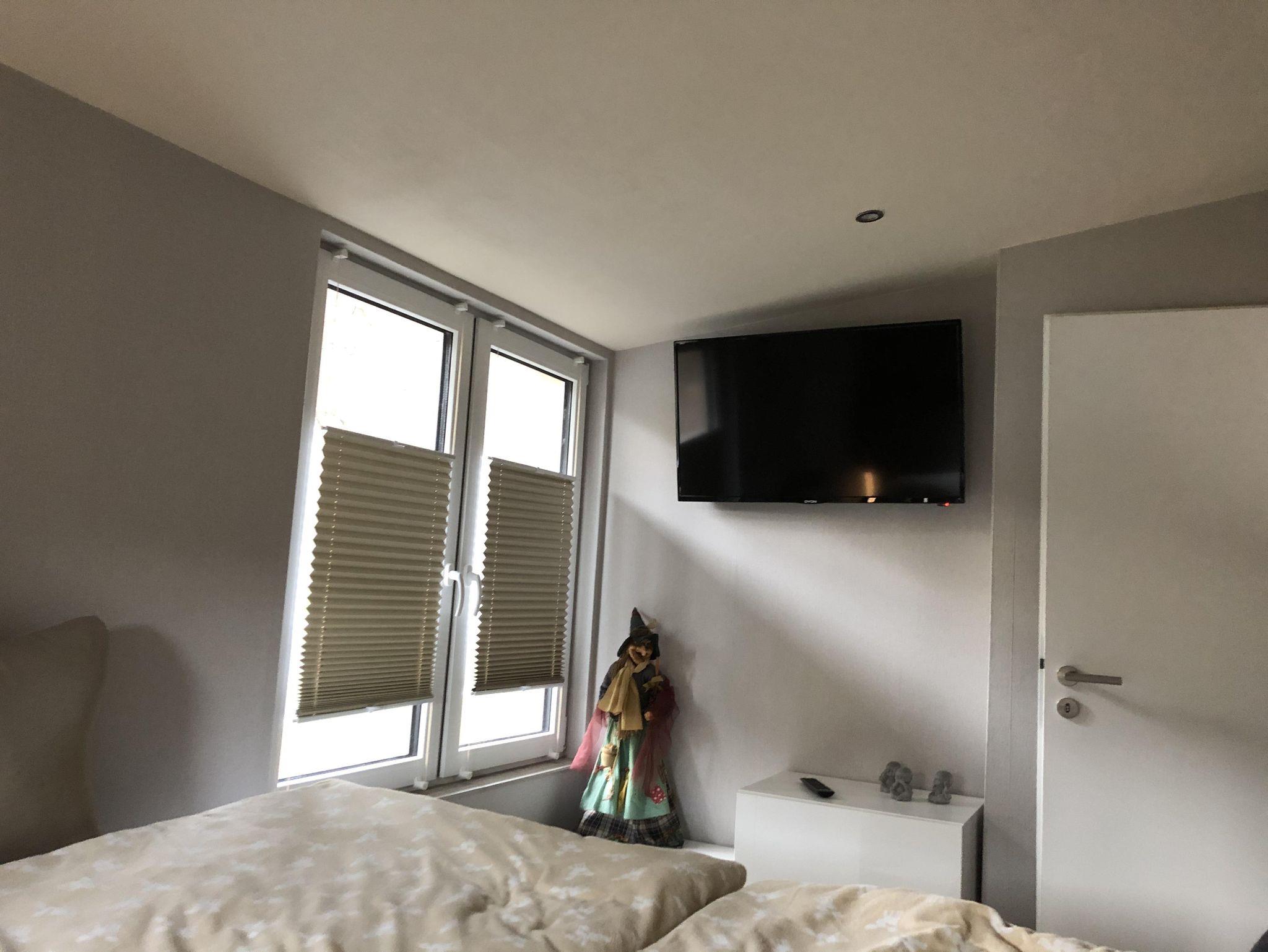 Unser Ferienhaus verfügt insgesamt über ca. 70qm Wohnfläche. Diese unterteilt sich im Erdgeschoss in ein Schlafzimmer welches mit einem 2,00m x 2,00m Doppelbett und einem 40“ Flatscreen ausgestattet ist. Auch von hier haben Sie einen schönen Blick auf die Bode und können ihrem Rauschen lauschen.