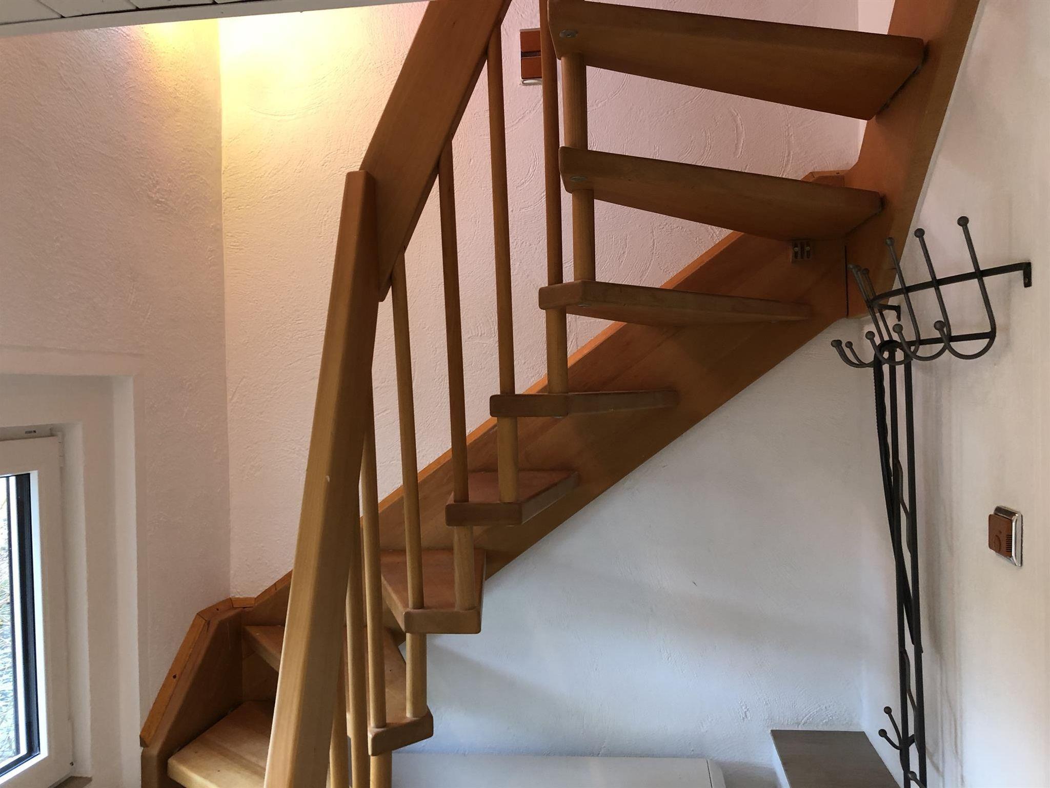 Vom Flur gelangt man über eine Holztreppe in die mit hochwertigen Holzmöbeln ausgestattete obere Etage. Wenn Sie nach einem langen Tag in der Natur ins Haus kommen, lädt das Wohnzimmer zum Ausruhen ein. Lassen Sie sich auf das gemütliche Sofa oder in den schaukelnden Stuhl fallen oder genießen Sie den Sonnenuntergang bei einem Glas Wein auf dem Balkon. Im Wohnbereich findet man eine Eckcouch sowie ein zusätzliches Schlafsofa, welches zwei weiteren Personen eine Übernachtungsmöglichkeit bietet.