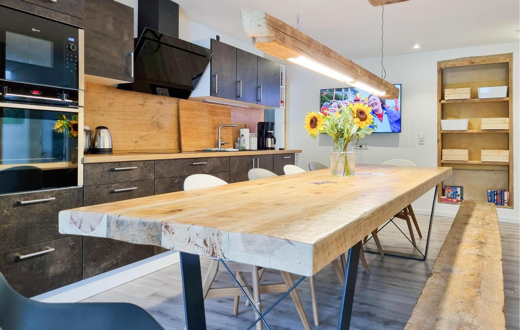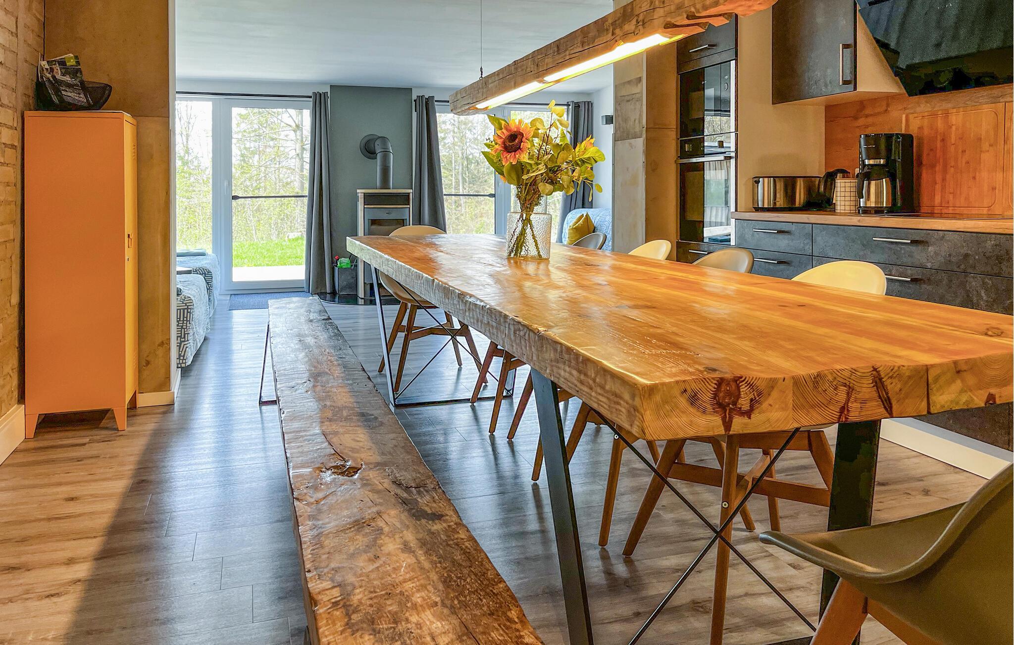 Kommen Sie in diese wunderschöne Hütte mitten im Harz. Hier können Sie mit Ihrer Familie und Freunden die Ruhe und Aussicht ins Grüne genießen. Hier fehlt es Ihnen an nichts. Die Küche ist perfekt ausgestattet. Bereiten Sie gemeinsam leckere Mahlzeiten zu und schlemmen Sie diese am riesigen hölzernen Esstisch., während Sie durch die Terassentür die gesunde Waldluft nach Innen strömen lassen. Das Wohnzimmer bietet mit dem Ofen wohlige Wärme. Lassen Sie Ihre Tage auf den gemütlichen Sofas Revue passieren oder haben Sie mit ihrer Familie Spaß an einem lustigen Spielabend auf dem Holzboden.