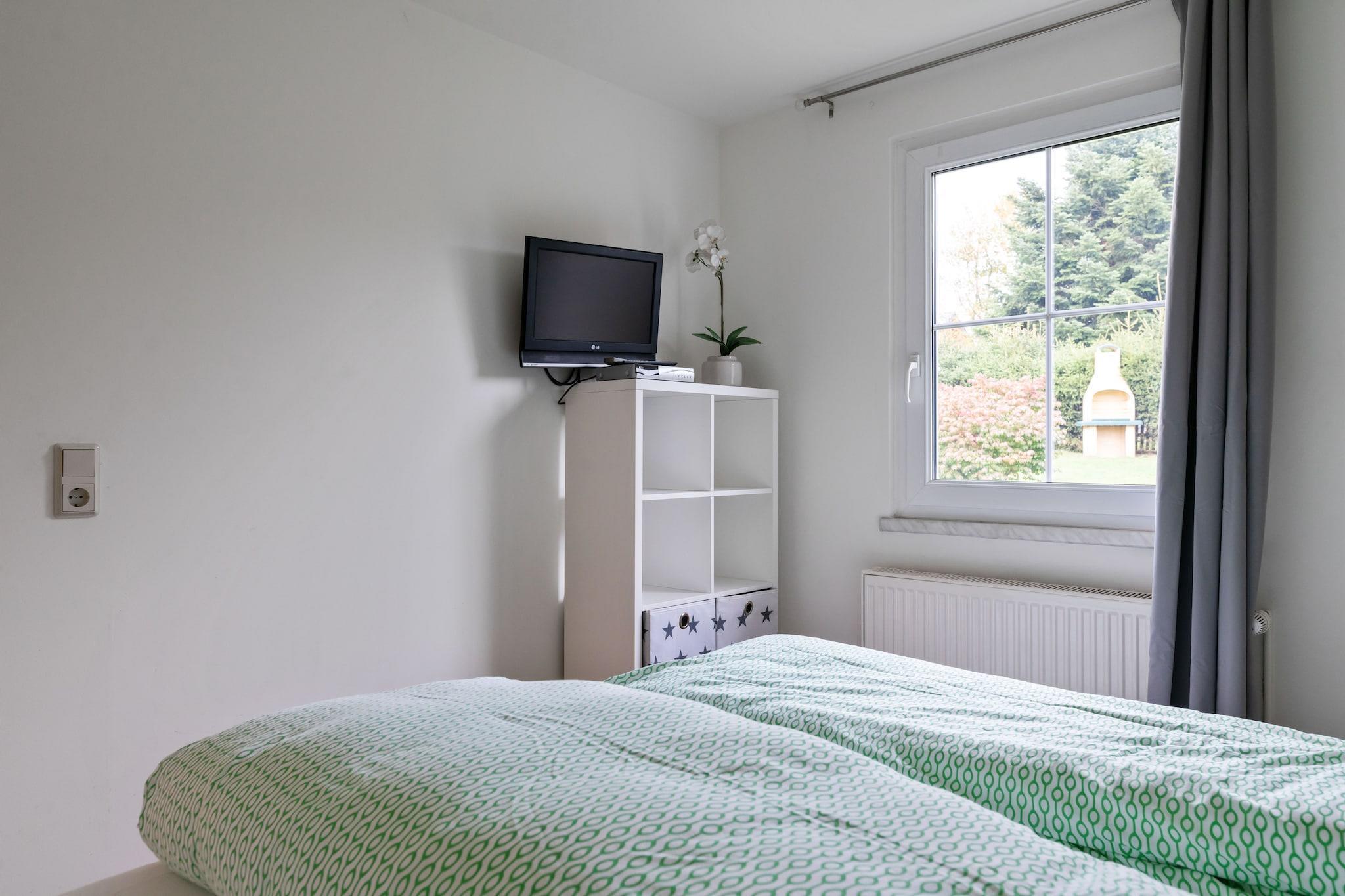 Ground floor: (Entrance, hall, Kitchen(toaster, cooker(4 ring stoves, ceramic, electric), coffee machine(filter, pads), oven, dishwasher, fridge), bedroom(double bed(boxspring, 180 x 200 cm), TV), bedroom(double bed(160 x 200 cm), TV), bathroom(shower, washbasin, toilet), conservatory/veranda(TV, dining table, fireplace)) garage, carport, heating(central, floor heating), terrace, garden(private, fenced, 400 m2), bicycle storage, garden furniture, sun loungers, BBQ(electric, charcoal), parking, deckchairs, parasol, party games, Towels/Sheets (Incl.)