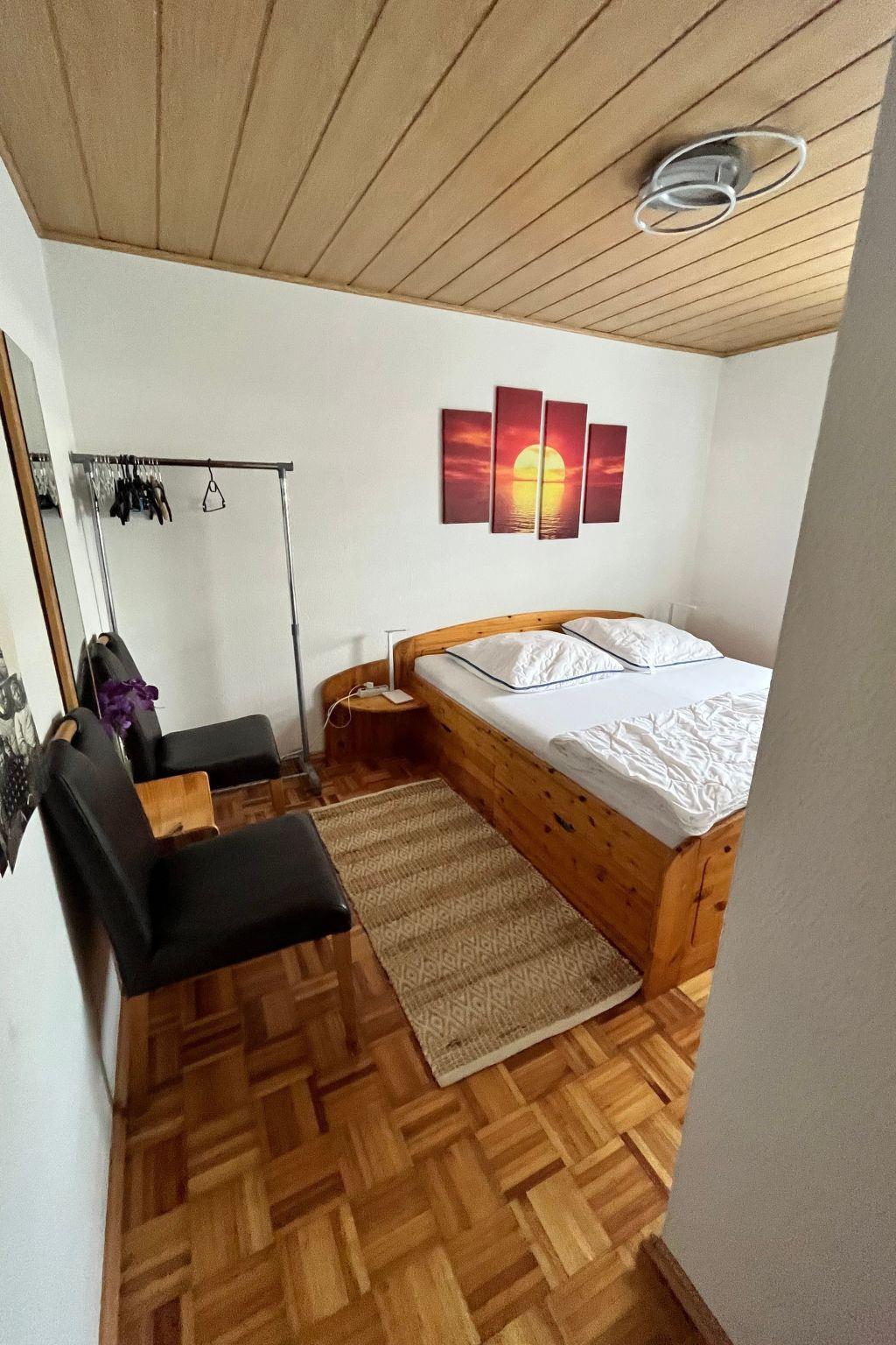 Inside, our flat will delight you with its extensive facilities. In addition to a warmly furnished living room with TV and direct access to the garden, there is a fully equipped kitchen with coffee machine and dishwasher as well as a spacious bathroom. Here you will find both a shower and a bathtub with shower attachment. For added convenience, there is a shared washing machine in the building, Wi-Fi throughout the flat and pets are welcome on request.