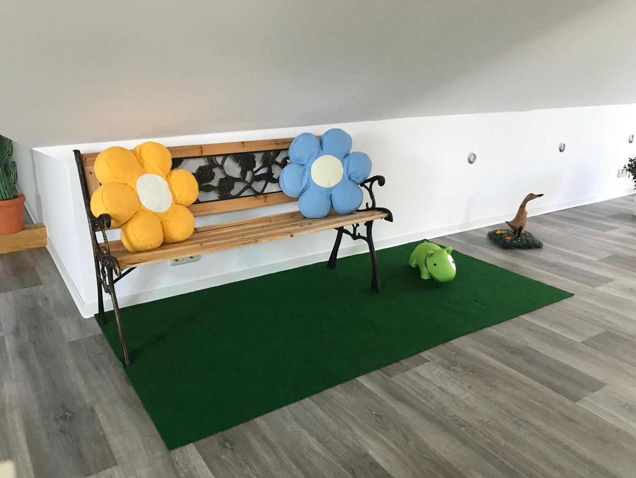 Die Außenanlage mit kleiner Grillecke steht ab Juni zur Verfügung, zahlreicheSpiele liegen aus. Bettwäsche ist im Preis enthalten