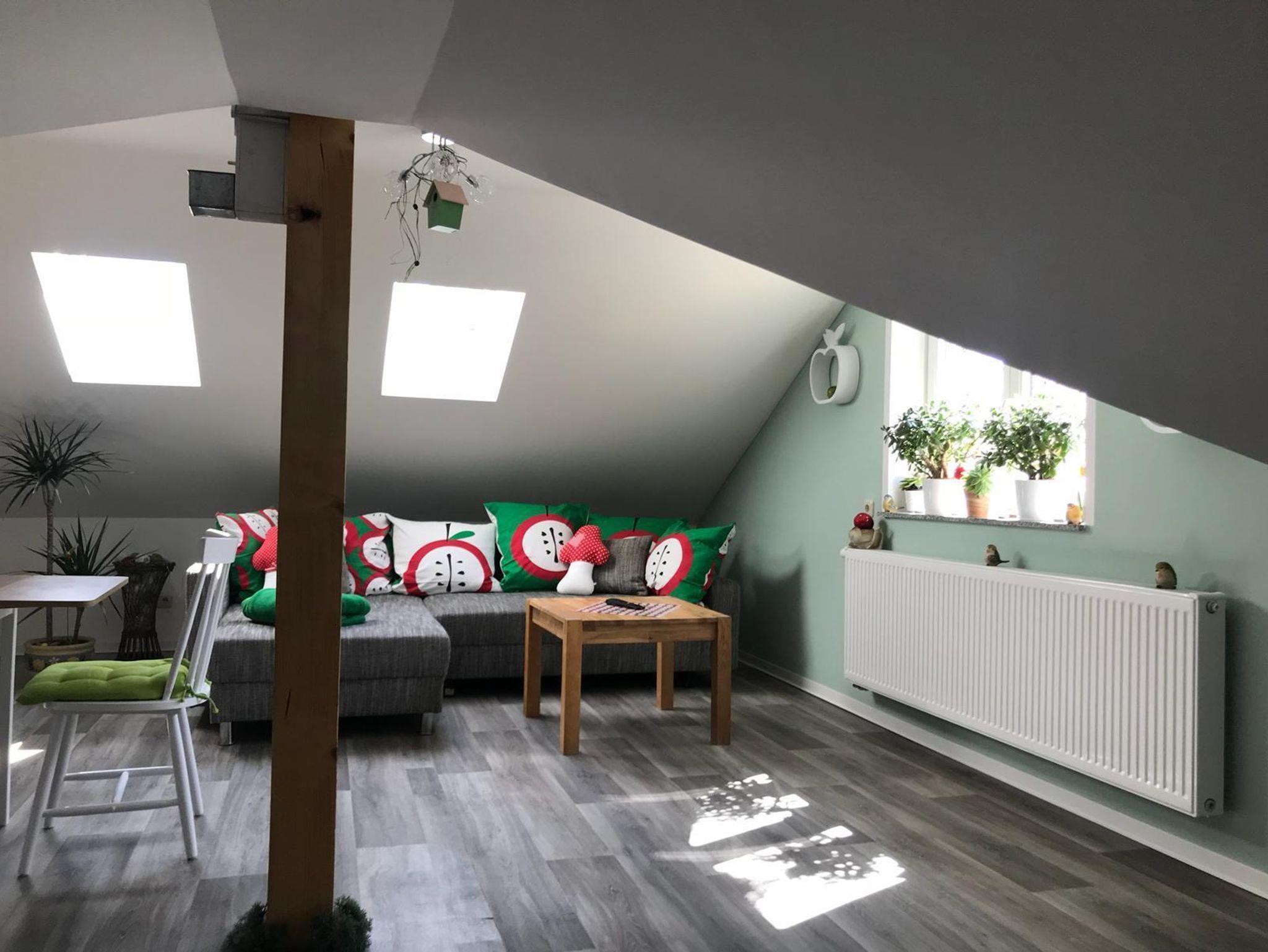 Die FerienwohnungApfeltraum liegt in der Kantorstr. 13, genau gegenüber der St.-Andreas-Kirche und des Klosters Wendhusen in der Altstadt von Thale. Es handelt sich um eine neu eingerichtete Dachgeschosswohnung mit seperatem Eingang. Sie hat eine Wohnfläche von 60 qm und verfügt über einen großen Wohn- und Essbereich, einen Kinderbereich mit 2 Schlafmöglichkeiten sowie ein Schlafzimmer mit Doppelbett.Eine Aufbettung der Couch ist möglich.