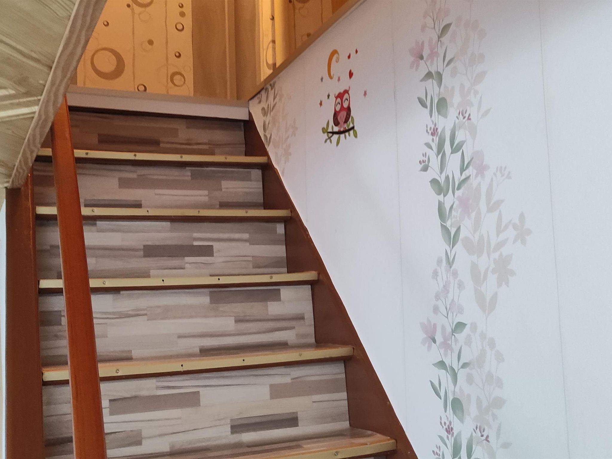 Abgeschlossene Wohnung in der ersten Etage mit Sonnenterrasse, Terrassenmöbel, Eingangsbereich mit Diele und Sitzecke, Wohnzimmer, TV, Schlafzimmer mit Doppelbett, komplett ausgestatte Küche, Bad mit Dusche/WC. In der oberen Etage steht ein weiteres Schlafzimmer mit getrennten Betten zur Verfügung. Abgeschlossenes Bad mit Dusche/WC - nur durch das eine Schlafzimmer / Durchgangsschlafzimmer erreichhbar.