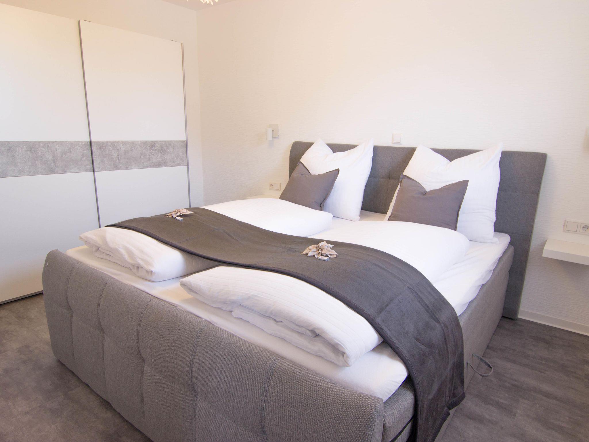 • Zwei separate Schlafzimmer mit Boxspringbett (180x200), Kleiderschrank und TV