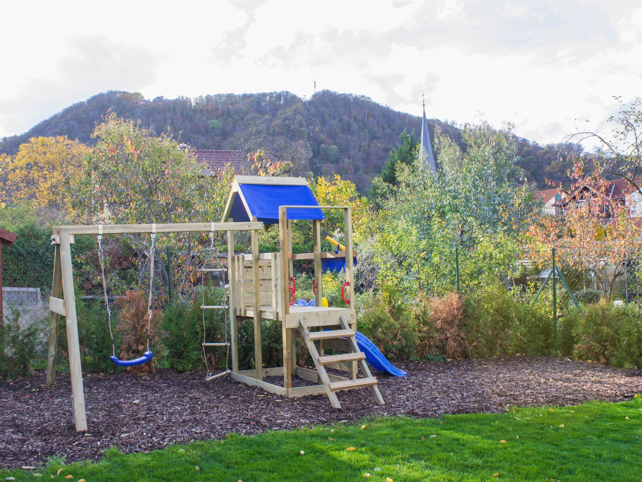 Für die Kleinsten gibt es einen Spielplatz im Garten,auf Wunsch einen Hochstuhl u Reisebett.