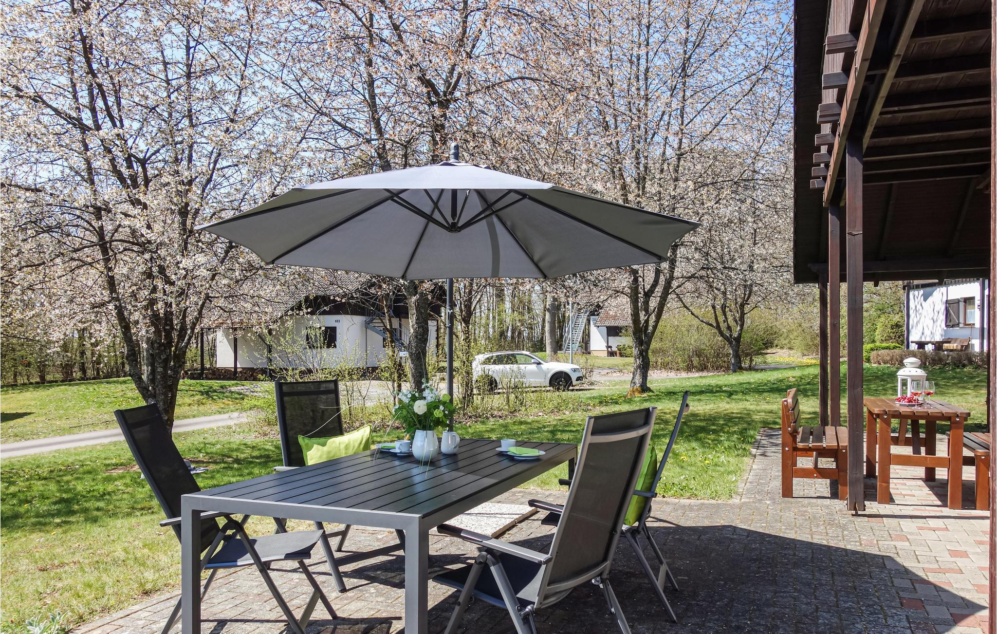Das Ferienhaus liegt auf einem großen Naturgrundstück. Zum Haus gehört eine geräumige Terrasse sowie zwei Balkone. Im Ferienpark befindet sich eine Tennishalle und ein Fitnessstudio, beides kann gegen Gebühr genutzt werden. Im anliegenden Hallenbad ist der Eintritt für unsere Gäste kostenlos.