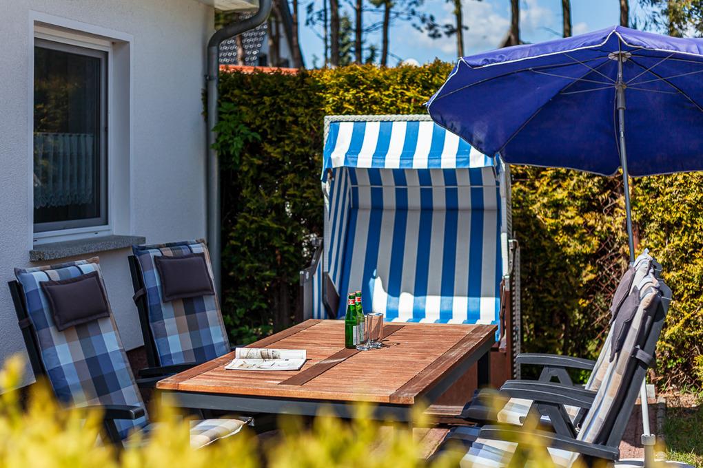Abgerundet wird der Bungalow mit einer Terrasse und den entsprechenden Gartenmöbeln. Ein Strandkorb bietet Ihnen von Mai - September dann auch noch das perfekte Ostseefeeling.