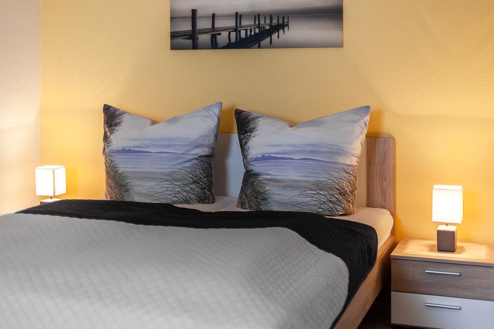 Das Elternschlafzimmer besitzt ein Doppelbett mit den Maßen 180cmx200cm.