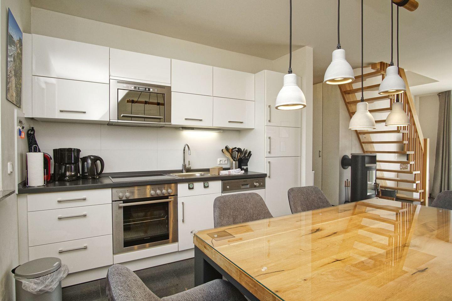 KÜCHE // offene Küche, 4-Platten Cerankochfeld, Spülmaschine, Kühlschrank mit Gefrierfach, Backofen, Toaster, Wasserkocher, Kaffeemaschine, reichlich Besteck, Geschirr und Küchenutensilien ++