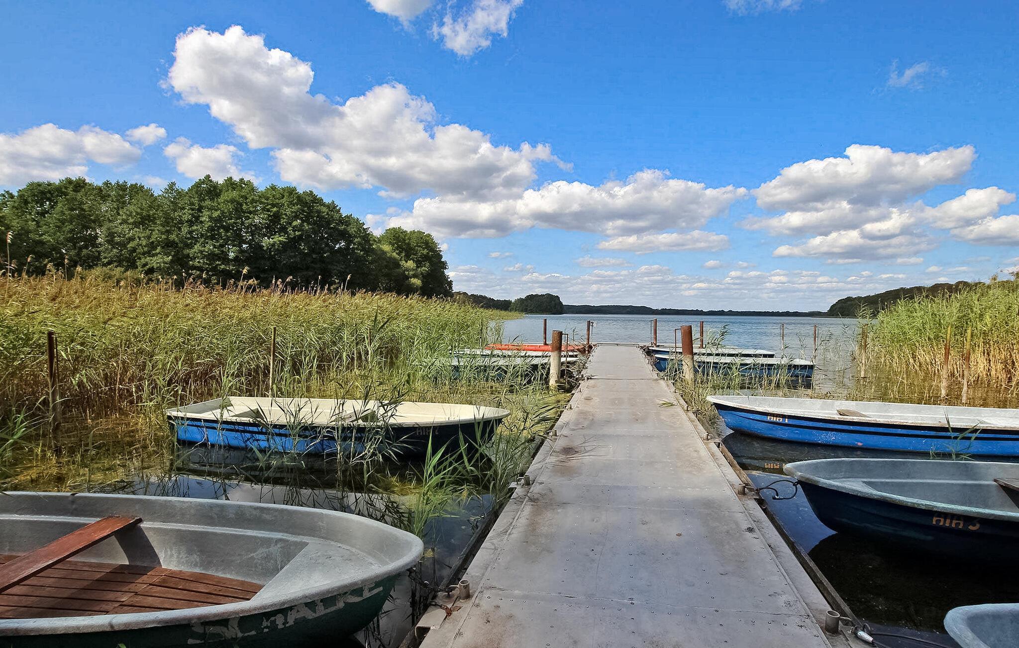 Ruhig, am Ortsrand von Thomsdorf mit Blick auf den Carwitzer See gelegen, befindet sich auf dem großzügigen Wohngrundstück der Eigentümer neben dessen Wohnhaus (sind nur gelegentlich vor Ort) das gemütliche Ferienhaus für bis zu 4 Personen. Eine schöne Badestelle und ein Bootssteg mit Ruderboot sind über das Grundstück nach wenigen Schritten erreicht.Das ganzjährig nutzbare Ferienhaus; früher eine Stellmacherei; erstreckt sich über zwei Etagen. Die untere wird durch die mächtige alte Bandsäge aus Stellmacherzeiten geprägt, um die das Haus einfach herum gebaut wurde. Heute ist sie als Esstisch in die offene Küche (Herd mit Backofen, Kühlschrank, Geschirrspüler, Mikrowelle, div. Küchenkleingeräte) und den Wohnraum (Polstermöbel, Kaminofen, Fußbodenheizung, Flachbild-TV, DVD-Player, Radio) integriert. Über eine offene Treppe (oben mit Kindersicherung) ist der große Schlafraum (Doppelbett, Einzelbett, Gästebett für Aufbettung) erreichbar. Das Bad mit Dusche, WC und Fön liegt im Erdgeschoss.Weiterhin stehen eine große Terrasse mit Seeblick, Grill, PKW-Stellplatz, kostenfrei 3 Fahrräder und 1 Ruderboot (vom 15.April bis 15.Oktober nutzbar), Unterstellmöglichkeiten für eigene Räder und Paddelboote, eine Feuerstelle und Möglichkeiten zum Fußballspielen (Großfeldtor) sowie auf Wunsch gegen Gebühr (1 EUR/Tag) W-LAN zur Verfügung. Im Gesamtpreis sind die Endreinigung, Bettwäsche, Wasser und Energie enthalten. Handtücher sind bitte mitzubringen. Vor Ort zu zahlen: W-LAN, wenn gewünscht. Haustiere sind nicht erlaubt.