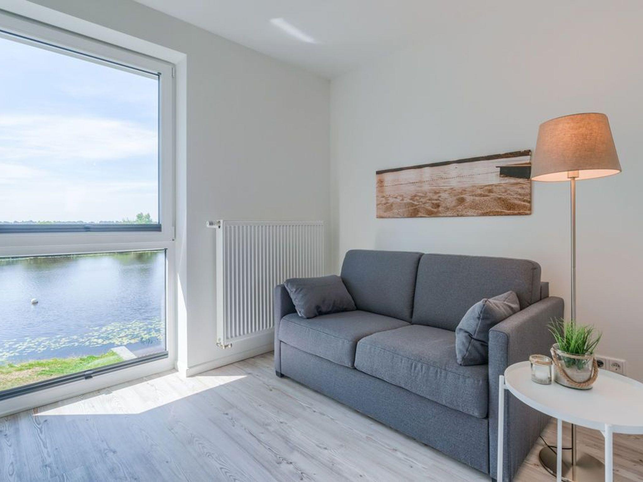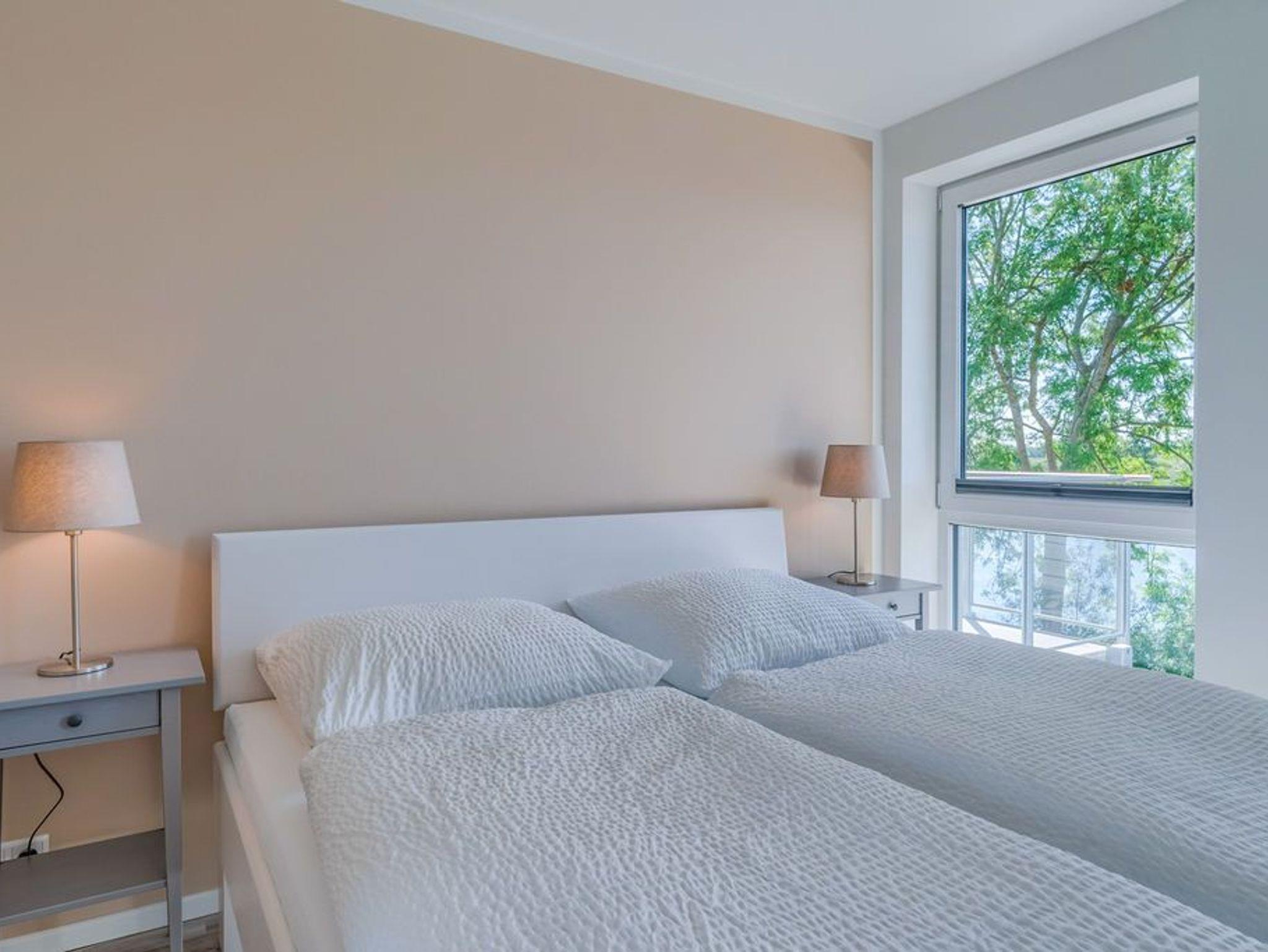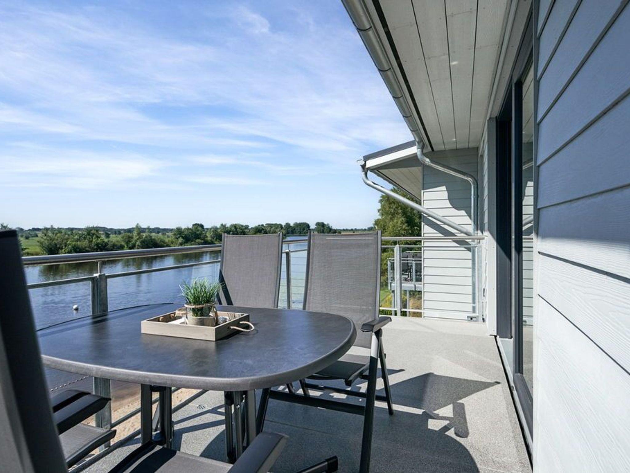 In der modernen Küchenecke bringt das Zubereiten der Speisen in der Gruppe Freude. Eine eingebaute Geschirrspülmaschine übernimmt anschließend den Abwasch, während Sie bei einem Wein auf dem Balkon den Tag Revue passieren lassen. Die Glasumrundung des Balkons schützt vor frischen Winden und lässt den Blick frei auf die wunderschöne Eider.
