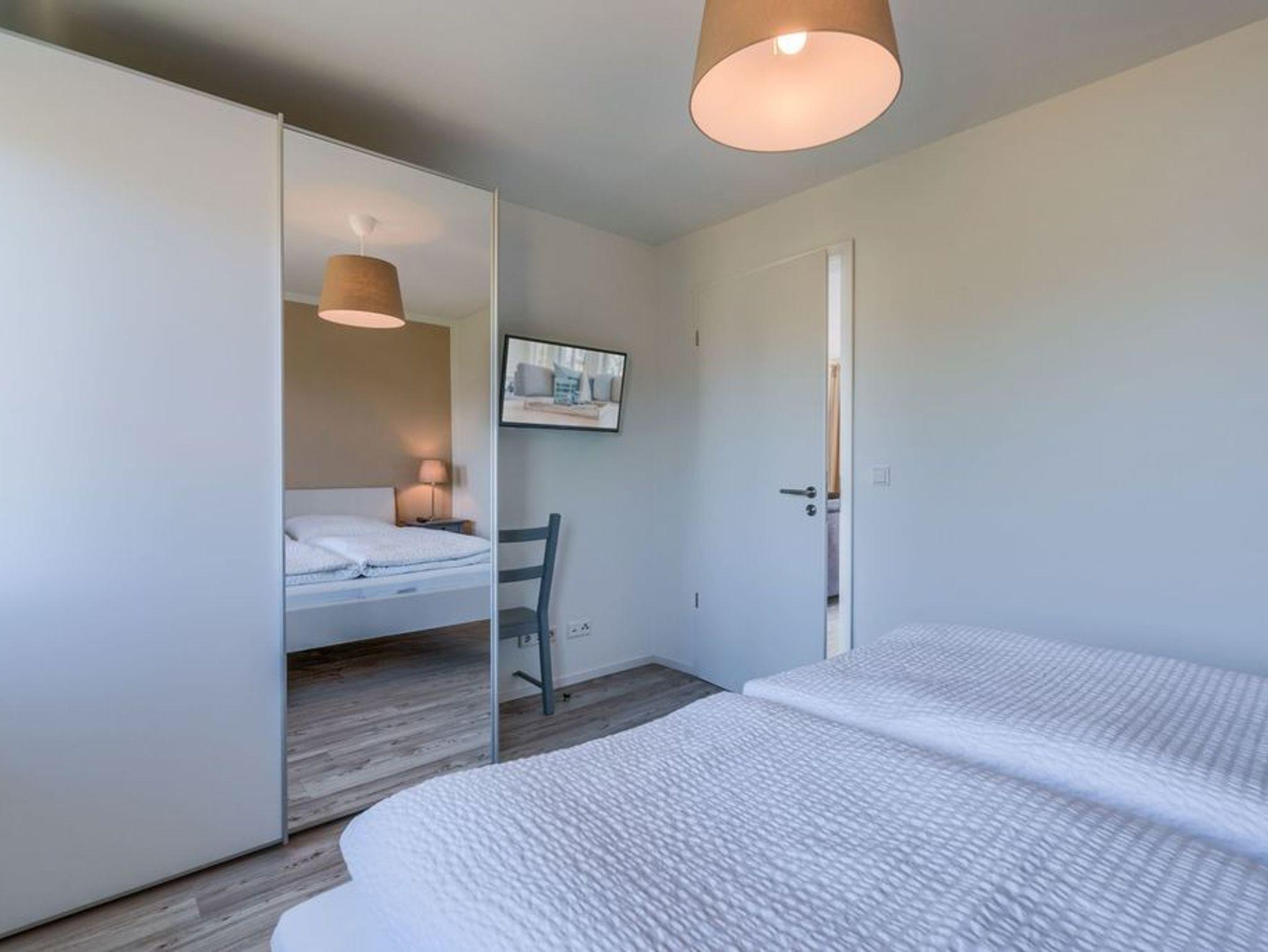 Mit viel Liebe zum Detail ist in der Raumgestaltung das Thema ?Strandblick? aufgenommen worden. So sind die beiden Schlafräume an den rückwärtigen Wänden im warmen Sandton gehalten und vermitteln in Kombination mit den dunklen Sitzmöbeln ein angenehmes Gefühl der Geborgenheit.