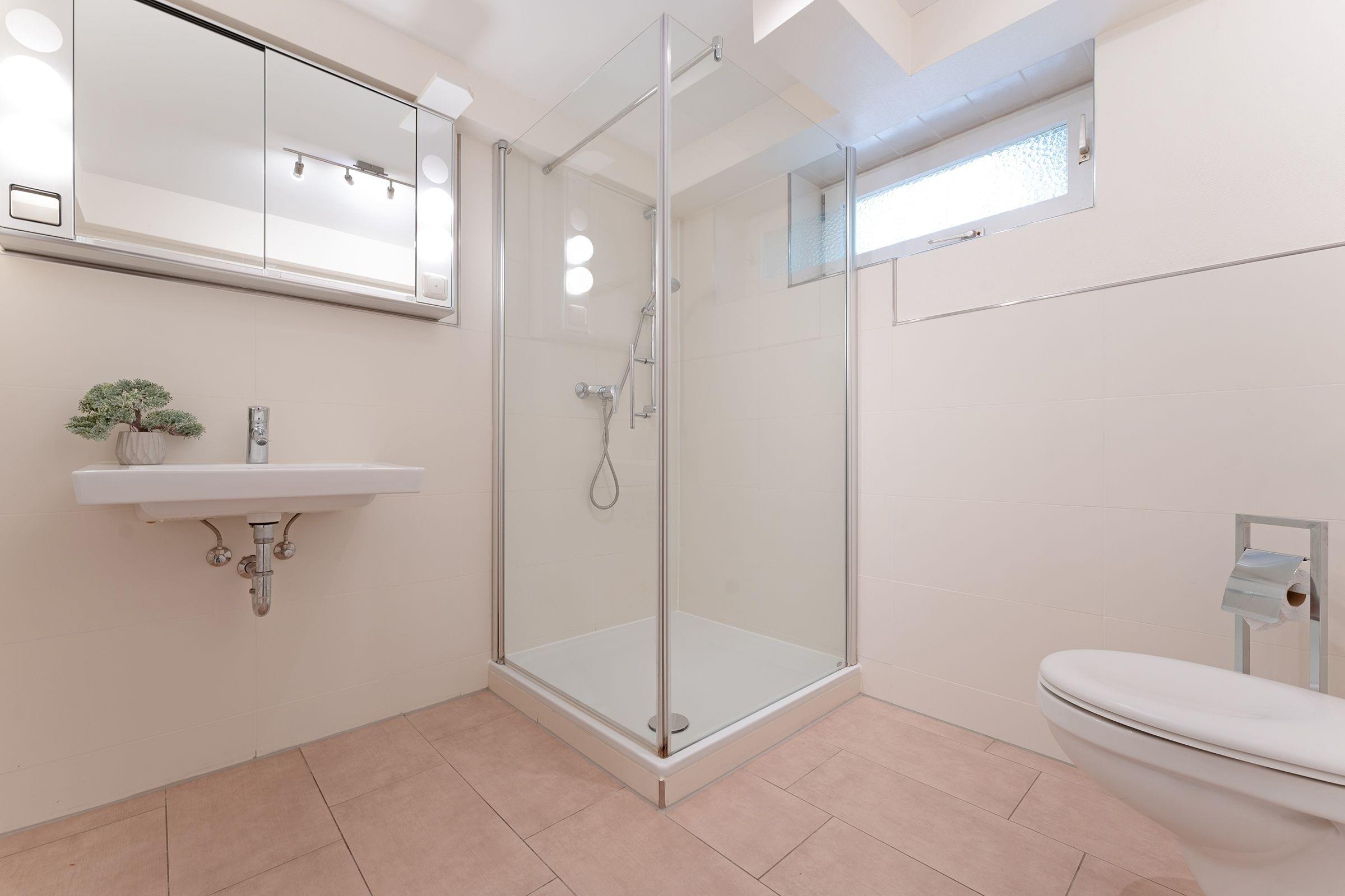 Das gepflegte Duschbad punktet mit einem Handtuchwärmer.