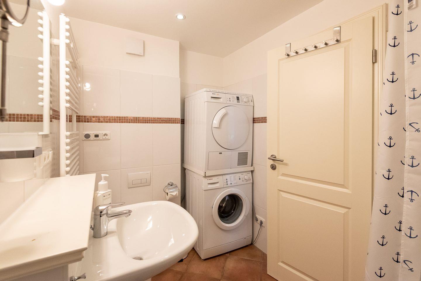 Badezimmer 2: Helles Vollbad mit Waschmaschine und Trockner.