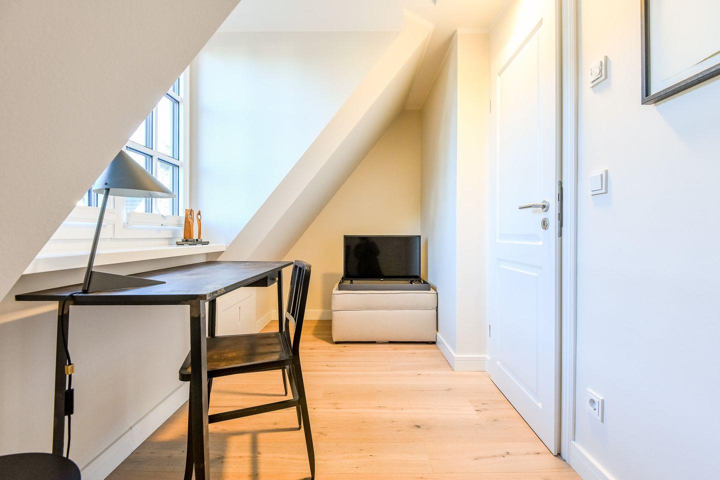 Ein kleines Arbeitszimmer steht zur Verfügung und bietet die Möglichkeit, ungestört Homeoffice-Tätigkeiten nachzugehen. Im Hauswirtschaftsraum befinden sich eine Waschmaschine und ein Wäschetrockner für zusätzlichen Komfort. Ein Pkw-Stellplatz mit E-Ladestation (gegen Gebühr) und ein Fahrradständer sind vorhanden. WLAN (ohne Gewähr) ist im gesamten Haus verfügbar und sorgt für beste digitale Vernetzung.