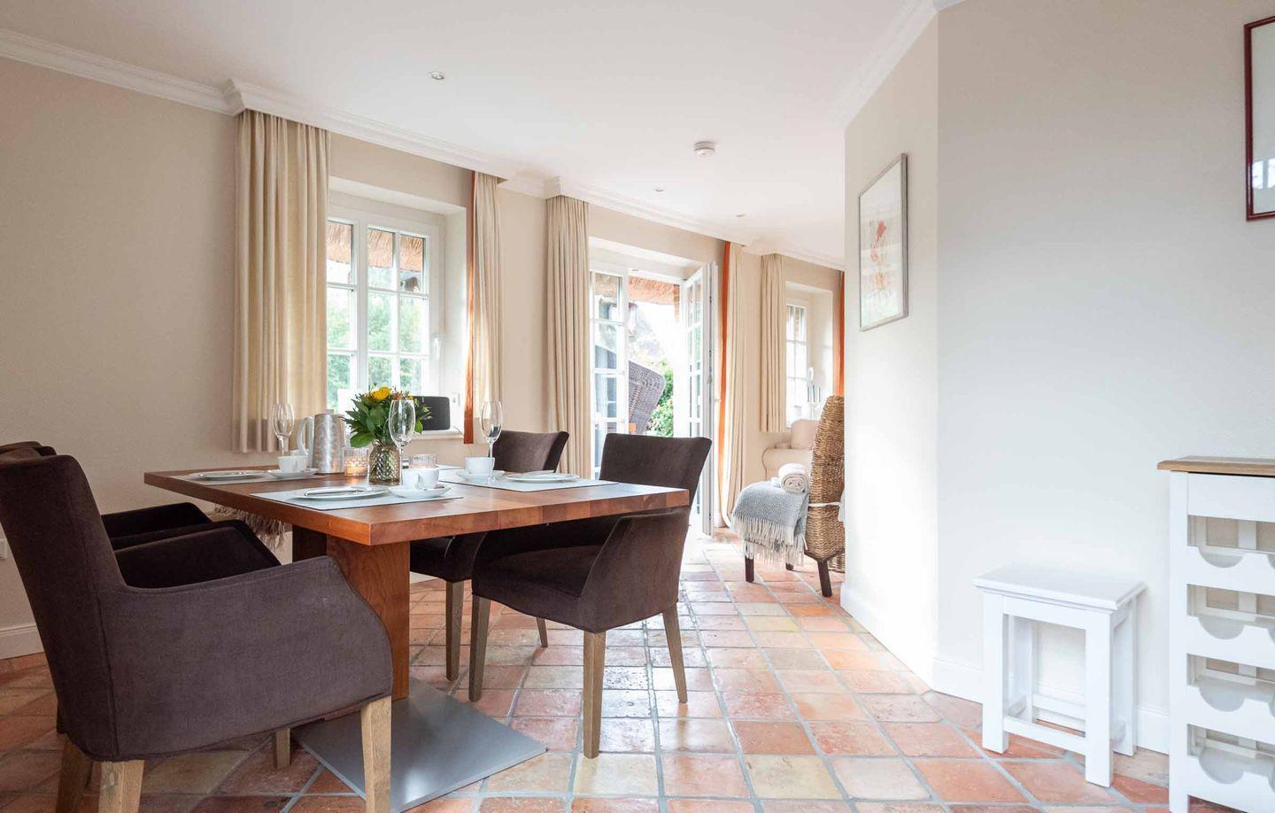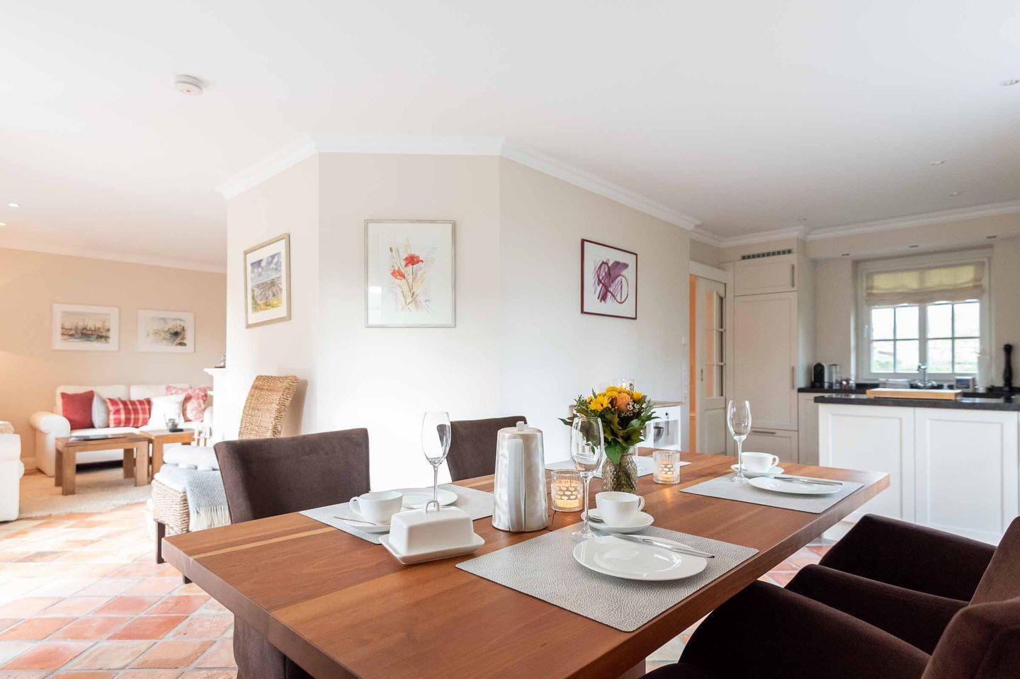 Exklusives Hausteil unter Reet auf ca. 120m² Wohnfläche für bis zu 5 Personen mit Kamin, eigenem Garten und hochwertiger Einrichtung in beliebter Wohngegend von Tinnum.