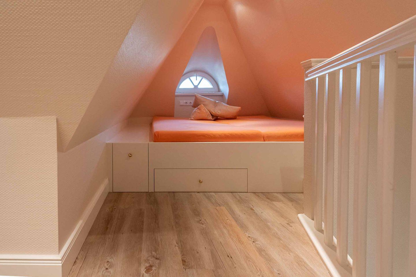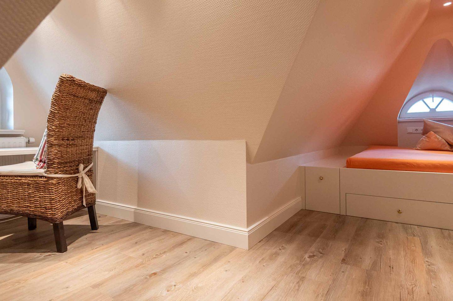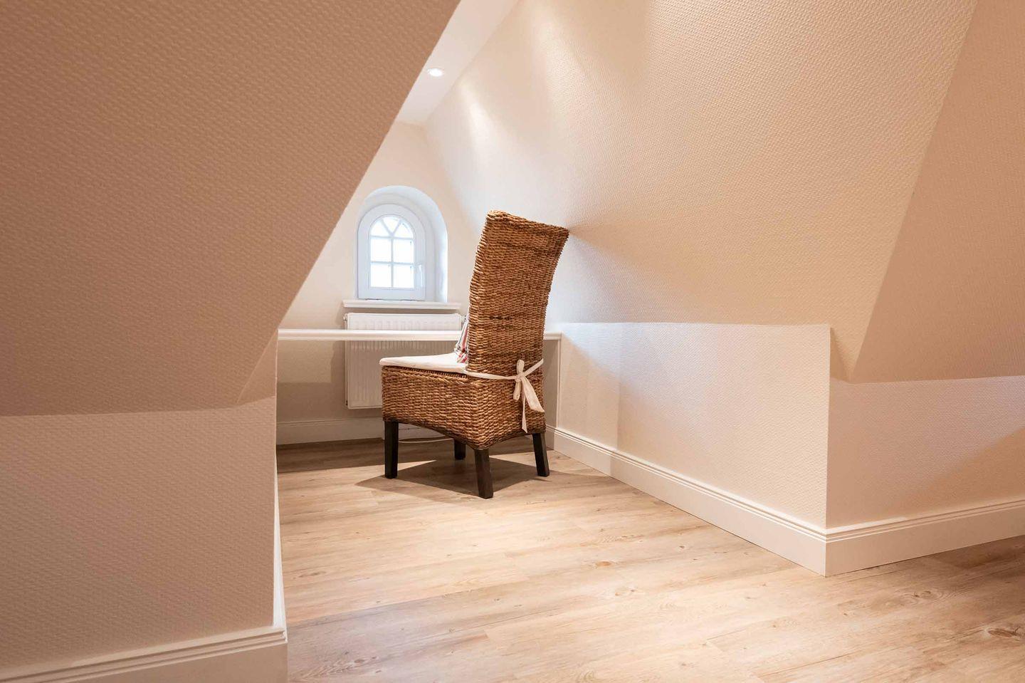 Im Dachgeschoss wartet ein behaglicher Rückzugsort zum Lesen, Spielen oder Arbeiten auf Sie.