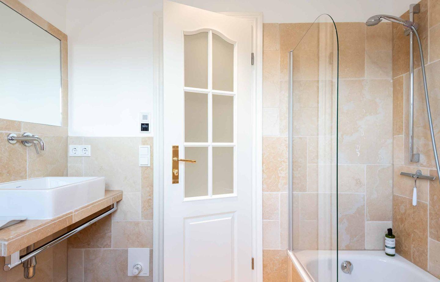 Badezimmer 2: Helles Bad mit bodengleicher Dusche und Fenster
