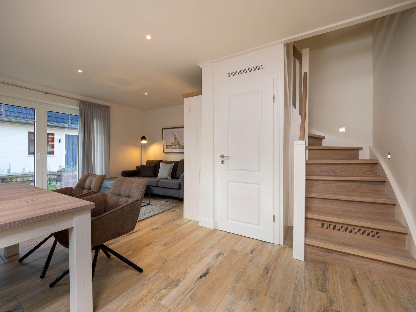 Im Erdgeschoss finden Sie neben einem kleinen Eingangsbereich mit Garderobe und Sitzbank: