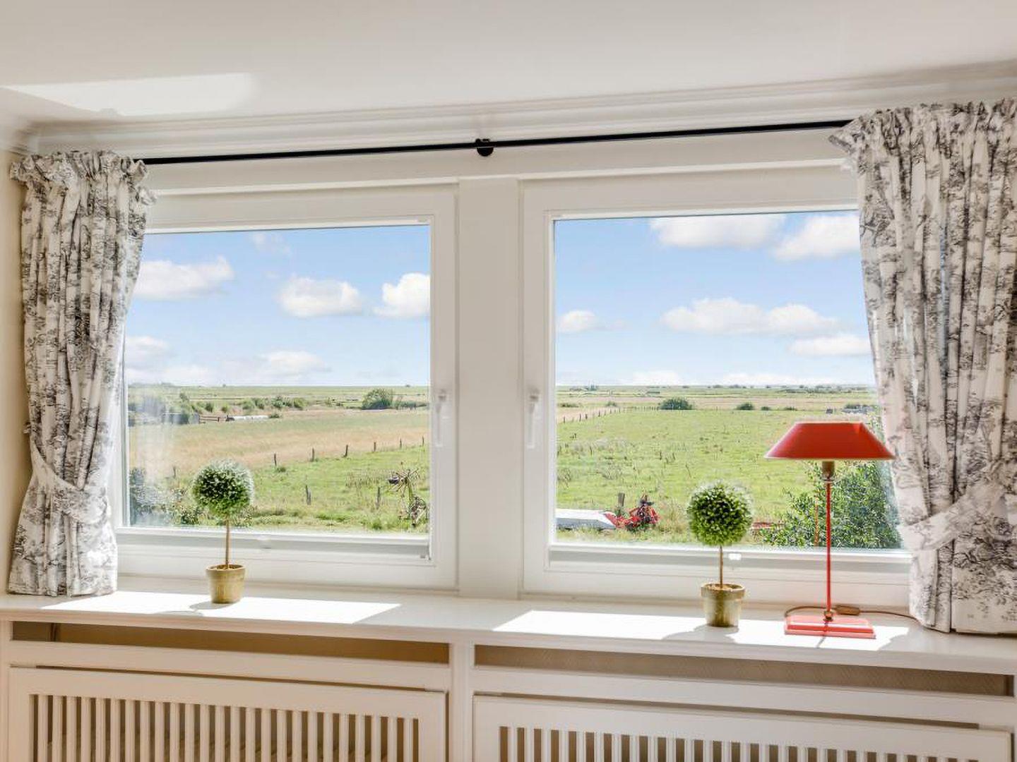 Dieses gemütliche Reiheneckhaus (ca. 118 m²) in Tinnum, Sylt, bietet Platz für bis zu 6 Personen und liegt fernab vom Trubel, jedoch zentral und mit herrlichem Blick auf die Tinnumer Wiesen. Es bietet ländliche Idylle ohne Lärm und Durchgangsverkehr, mit direkten Spazier- und Radwegen vor der Haustür. Der Strand ist ebenfalls nicht weit entfernt, ideal für entspannte Spaziergänge. Im Erdgeschoss befinden sich eine moderne, separate Küche sowie ein Wohnzimmer mit gemütlicher Sitz- und Essecke. Zur Ausstattung gehören ein TV-Flachbildschirm, eine Stereoanlage mit DVD-Player und ein Gäste-WC im Eingangsbereich. Vom Wohnzimmer gelangt man auf die Südterrasse mit großem Garten, Tisch und Stühlen, die zum Sonnenbaden einlädt. Im Obergeschoss gibt es zwei Schlafzimmer mit Doppelbett (180 x 200 cm) und ein Duschbad mit WC und Fenster. Ein weiteres Schlafzimmer mit Doppelbett (180 x 200 cm) befindet sich im Dachgeschoss und verfügt über ein kleines Duschbad mit WC. Zur Ausstattung gehören außerdem eine Waschmaschine in der Garage und ein kostenfreier Stellplatz. Ein Fahrradraum ist nicht vorhanden. Haustiere sind willkommen.