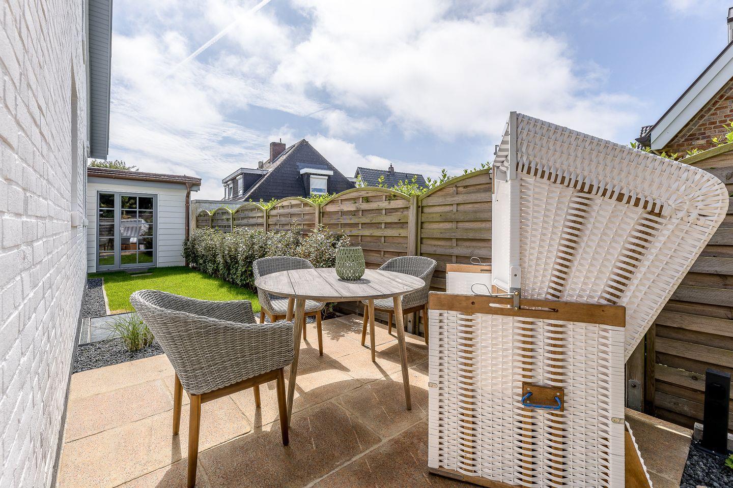 Ein Urlaubszuhause wie ein ruhiger Hafen: Die Einbauten und das Interieur sind durchweg in hellen, erdigen Tönen gehalten, einzig ein paar Möbel und Accessoires setzen farbige Akzente. Der Wohnbereich im ersten Obergeschoss ist ein toller Stilmix aus coolen Stücken und Scandi-Muckeligkeit in dem ein E-Kamin rundum pure Behaglichkeit schafft. Hier findet jeder seinen Lieblingsplatz, sei es auf der gemütlichen Couch oder den beiden Loungesesseln. Gleich um die Ecke befindet sich die offene Küche nebst Weinschrank. Was dort gezaubert wird, kann anschließend gemeinsam am großen Esstisch genossen werden.