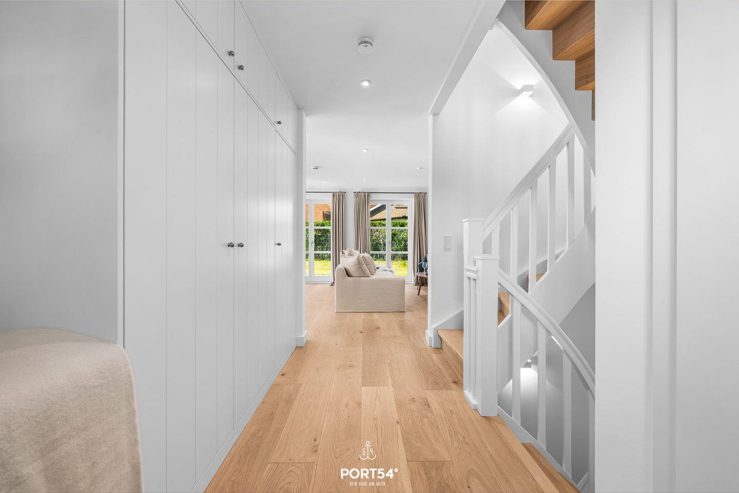 Für entspanntes Wohnen und individuelle Rückzugsmöglichkeiten verfügt die Villa über drei geschmackvoll eingerichtete Schlafzimmer mit Sichtschutz für alle Fenster. Zwei elegante Badezimmer ergänzen die Komfortausstattung: Beide sind mit bodengleichen Duschen, Waschbecken, WC, Haartrockner und Kosmetikspiegel ausgestattet. Ein Waschtrockner steht Ihnen zur Eigennutzung bereit, darüber hinaus sind Bügelbrett, Bügeleisen, Wäscheständer und Staubsauger vorhanden.