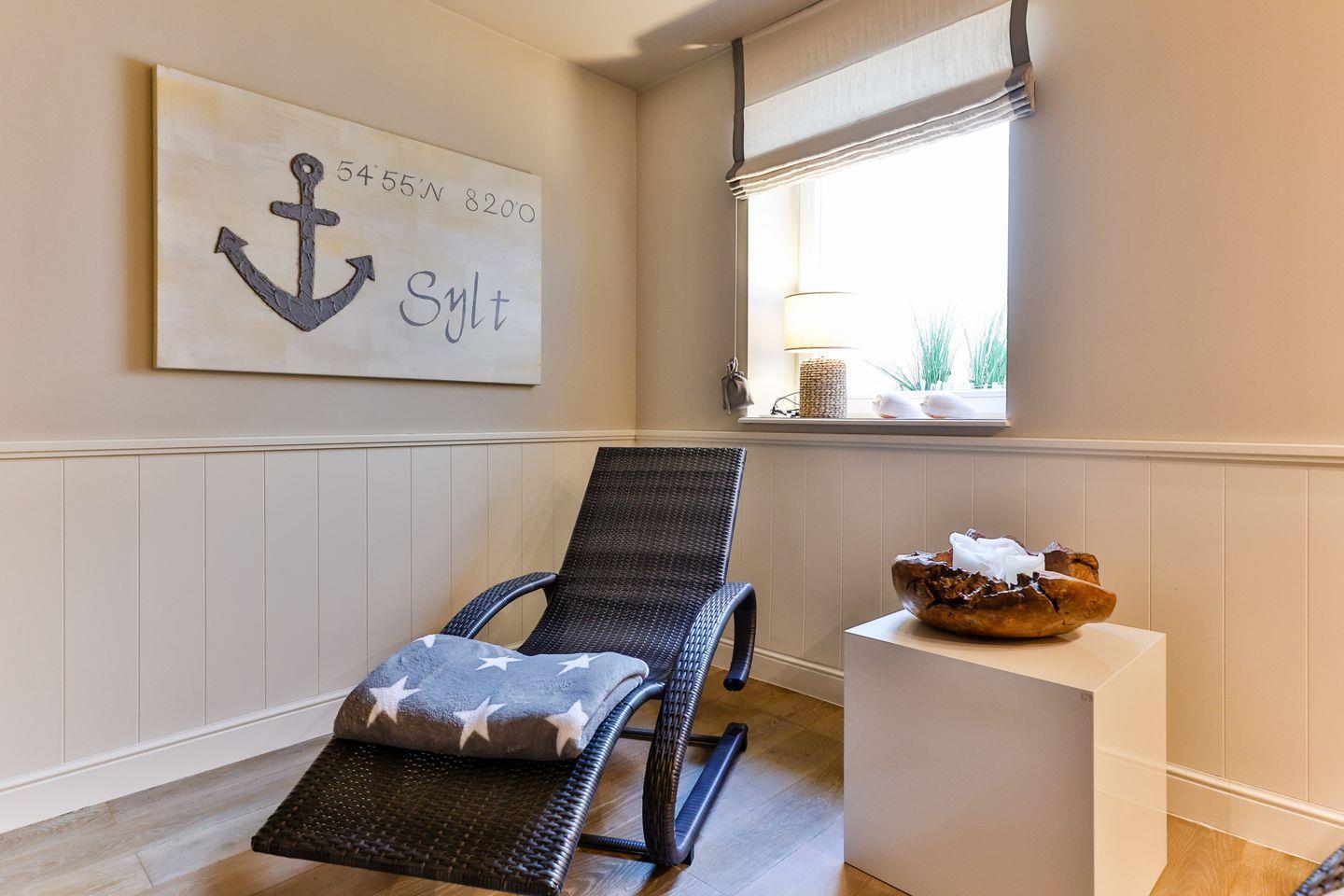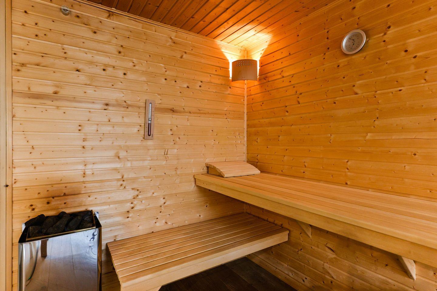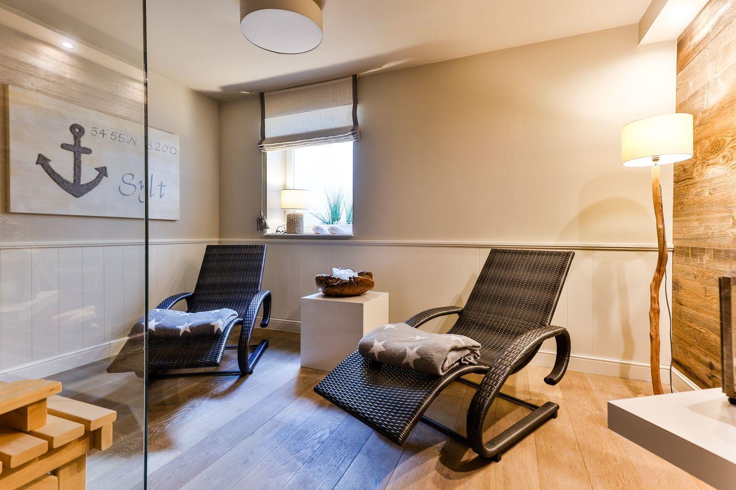 Im privaten Wellnessbereich erwartet Sie eine großzügige Sauna und ein Ruheraum, die Ihnen nach einem ereignisreichen Tag die perfekte Möglichkeit zur Erholung bieten.