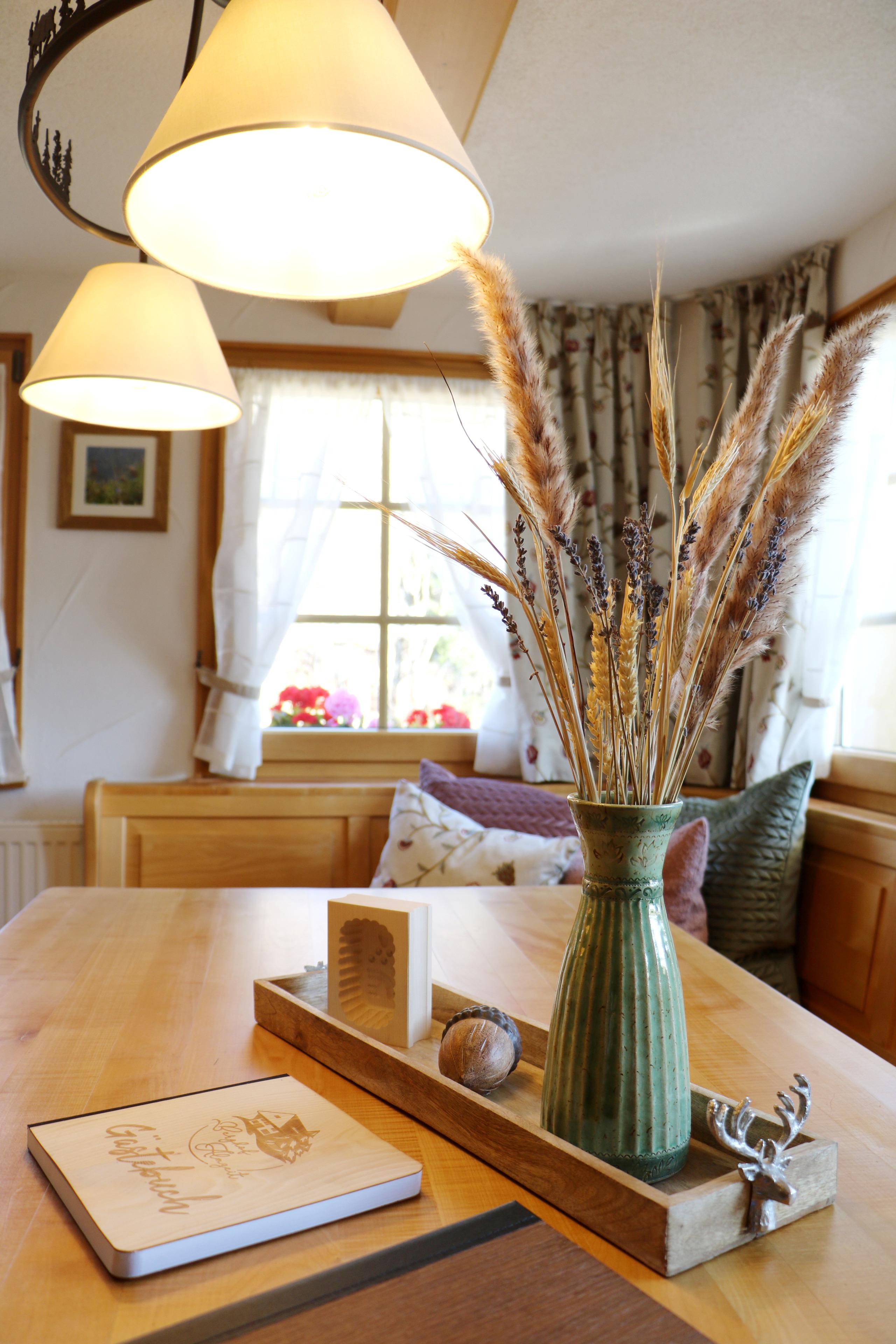 Im Sommer bietet der Garten viel Sonne, Spielmöglichkeiten für Kinder und einen Blick auf die Schweizer Alpen. Im Haus lässt es sich in der Gemeinschaftssauna relaxen oder im gemütlichen Wohnzimmer entspannen. Die große Eckbank bietet Platz für gemütliche Abende zur Brotzeit und für Tischspiele.