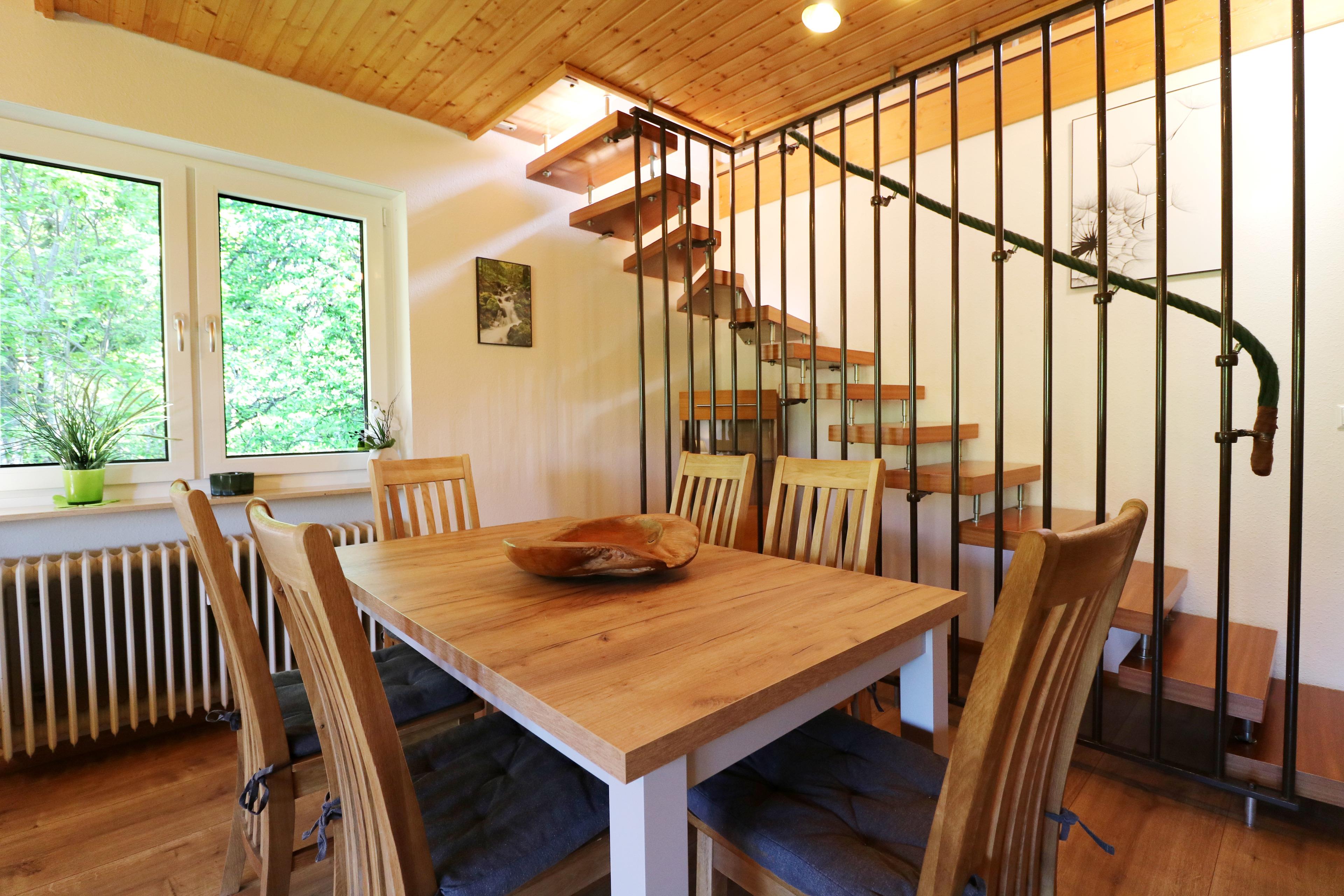 - Wohn-/Esszimmer mit Esstisch, Couch und TV