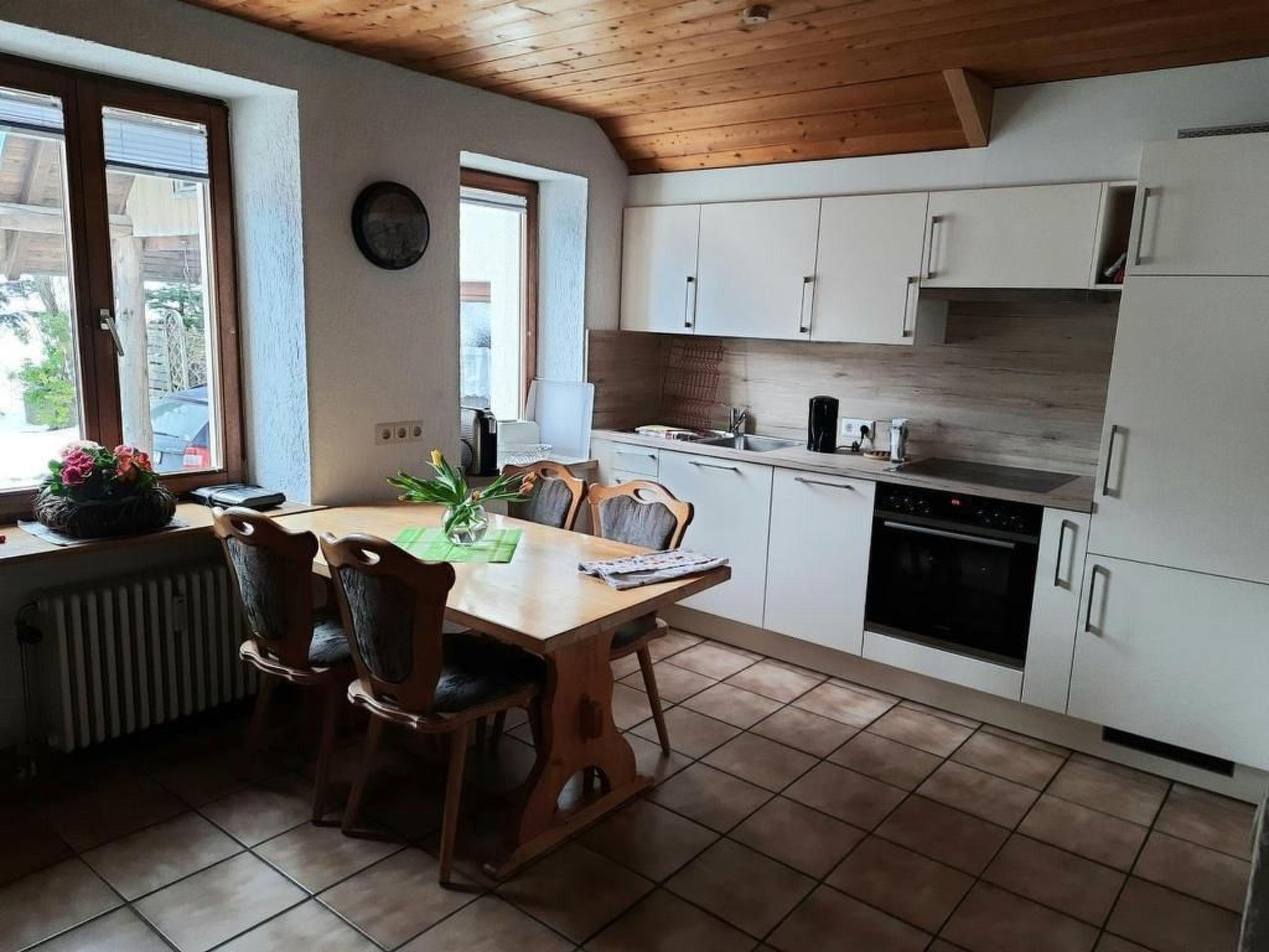 Our flat has two separate bedrooms - one with a double bed and the other with a bunk bed - a bathroom and a combined living room and eat-in kitchen with a cosy wood-burning stove. After a comprehensive renovation in 2021, the kitchen and living room with their new furnishings, including a sofa set with pull-out bed, offer the perfect retreat for relaxing evenings.