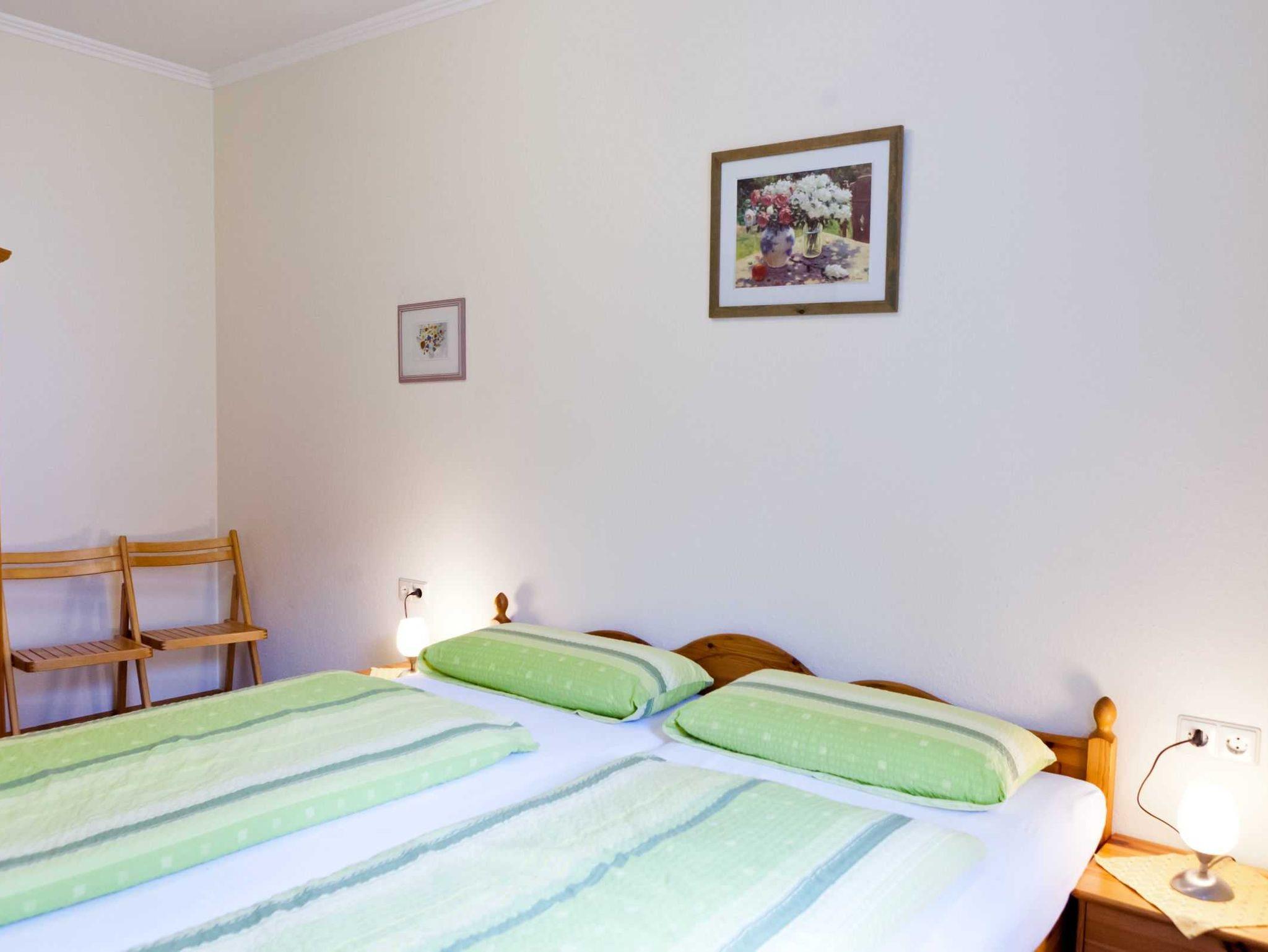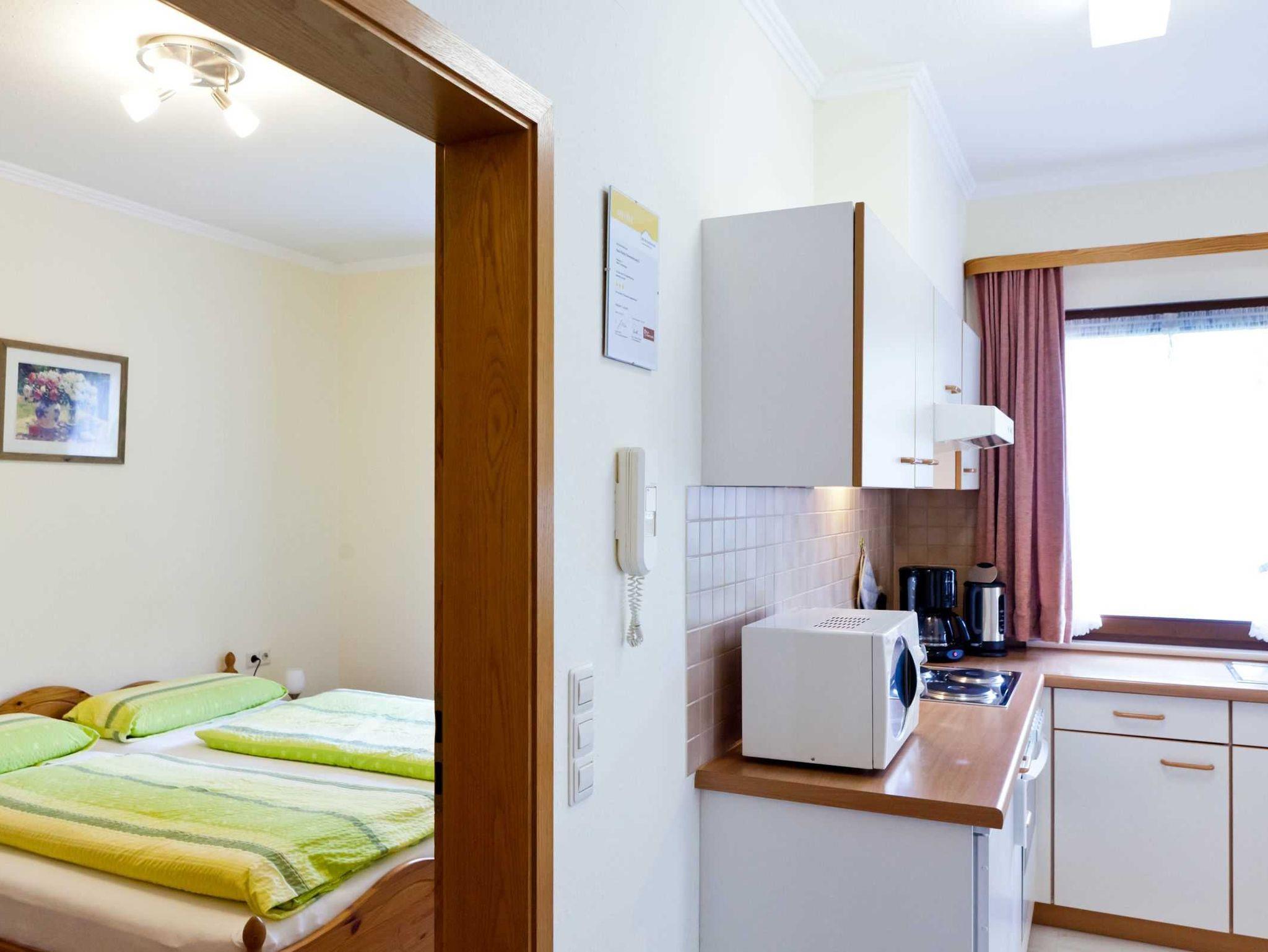 Die Ferienwohnung besteht aus Schlafzimmer und Wohnraum mit Küchenzeile sowie Dusche/WC.