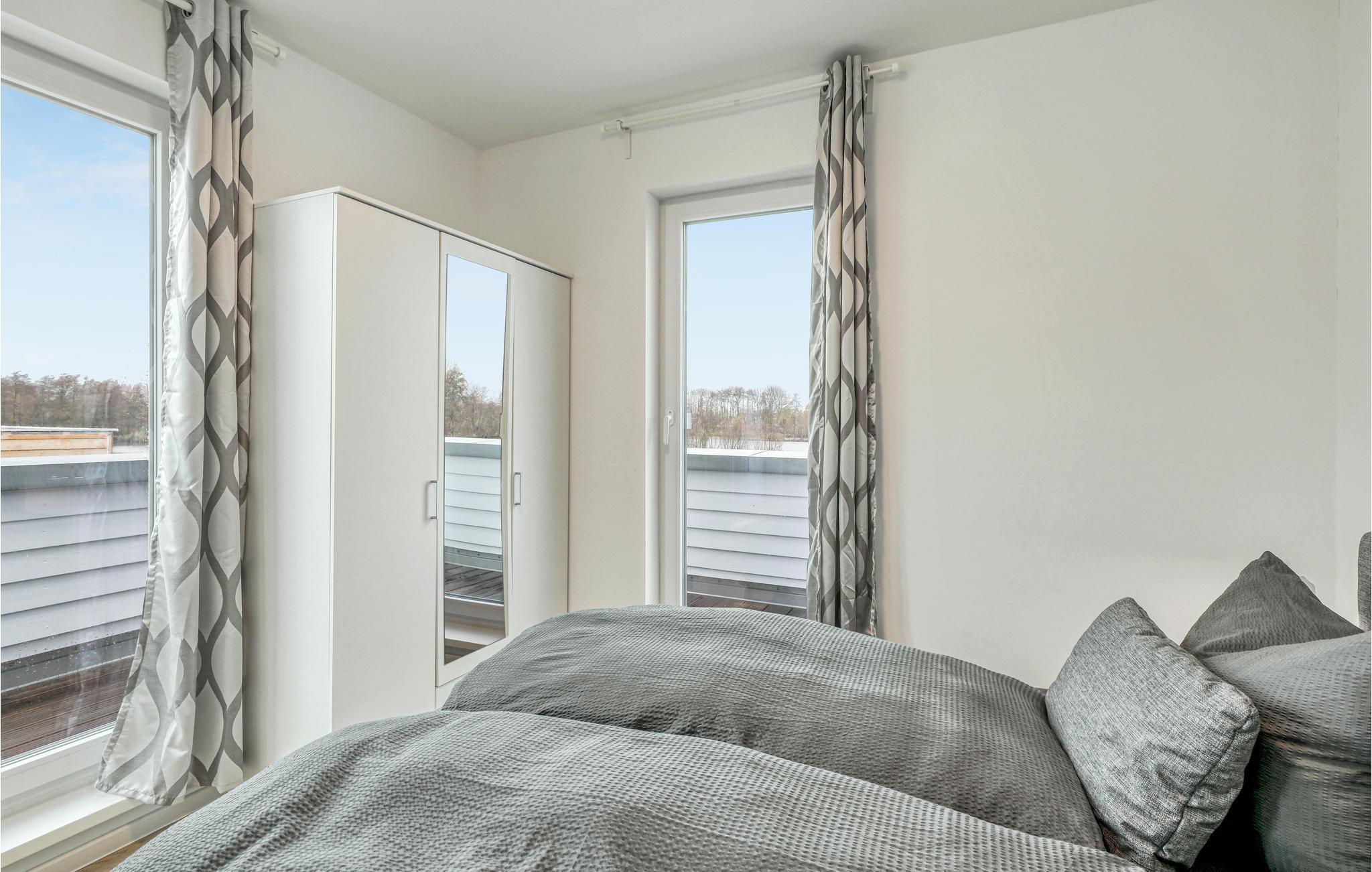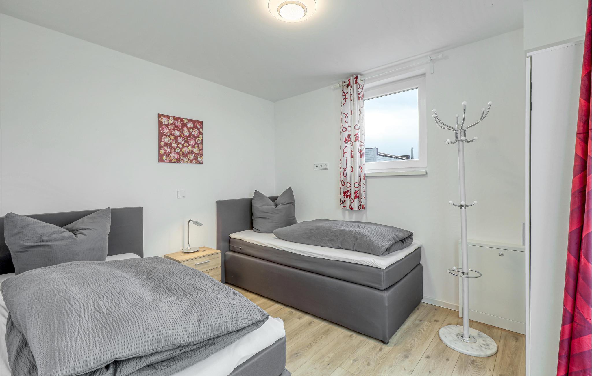 Vom Erdgeschoss gelangt man über eine geschwungene Treppe in das Obergeschoss des Doppelhauses, wo zwei geräumige Schlafzimmer auf Sie warten. Hier können Sie die schöne Nordseeluft von einem umlaufenden Balkon genießen, welcher von beiden Schlafzimmern aus zugänglich ist. Hochwertige Möbel und eine gelungene Raumaufteilung machen dieses Ferienhaus zu einem traumhaften Urlaubsdomizil.