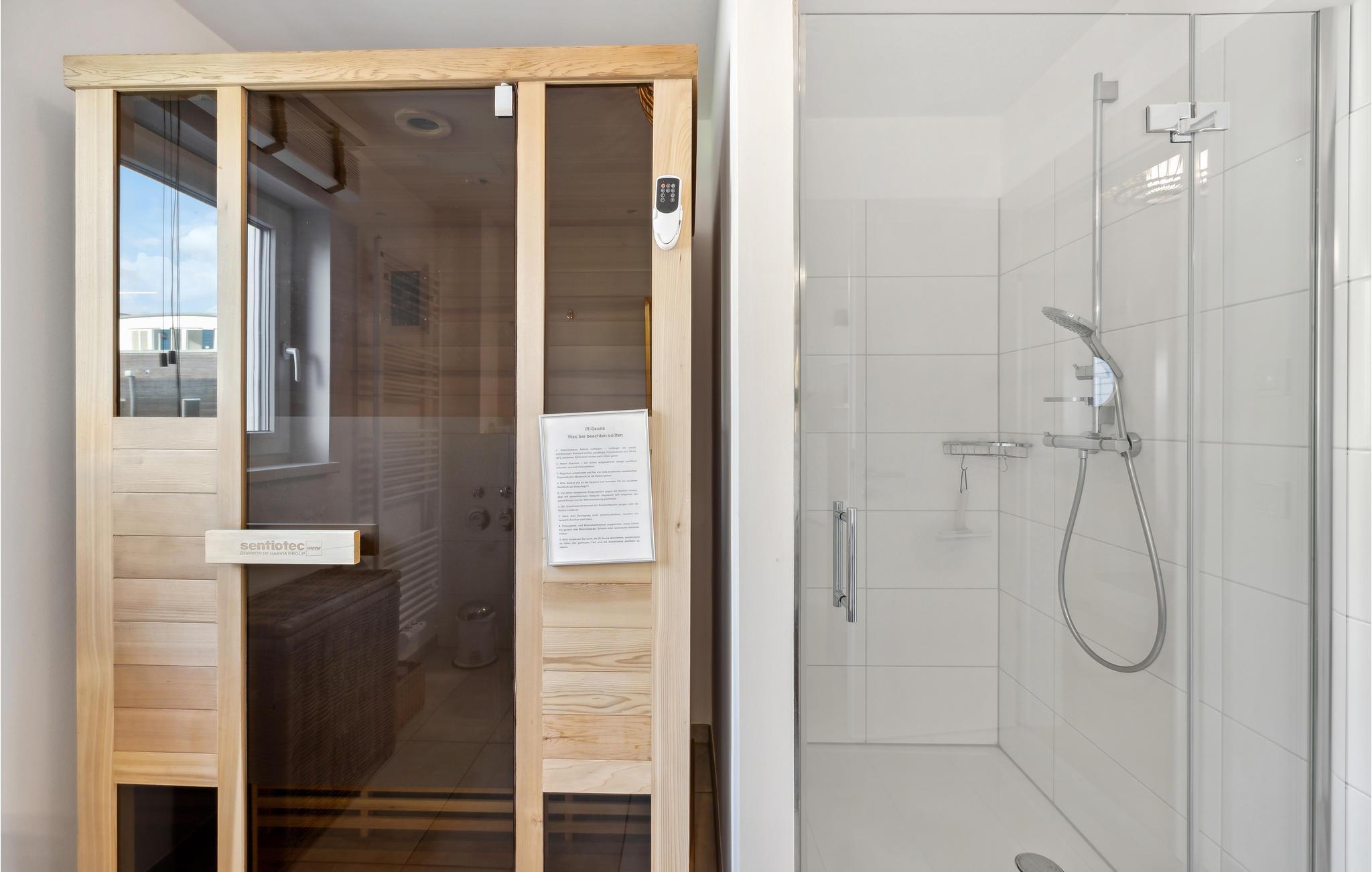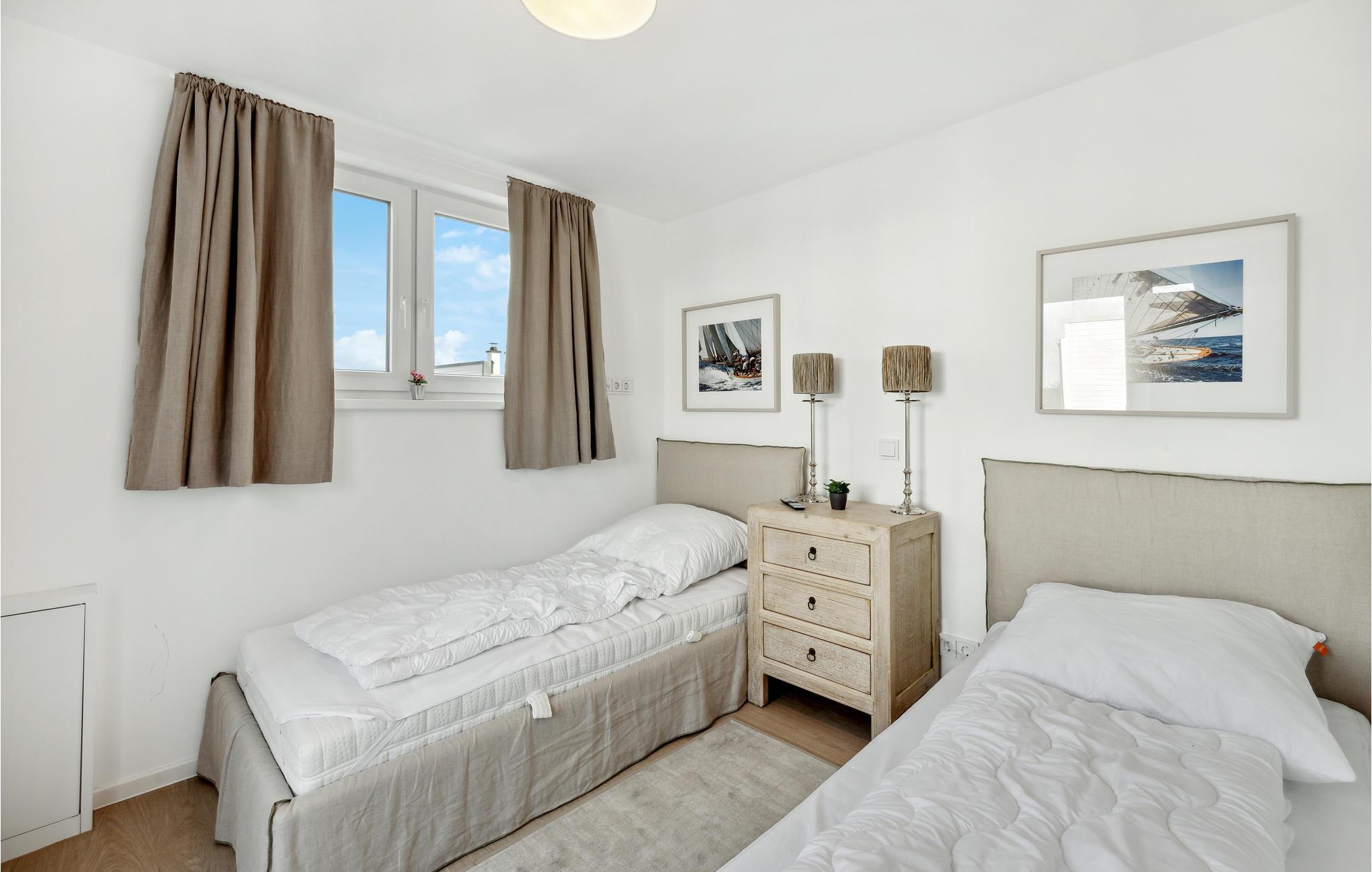 Vom Erdgeschoss gelangt man über eine geschwungene Treppe in das Obergeschoss des Doppelhauses, wo zwei geräumige Schlafzimmer auf Sie warten. Hier können Sie die schöne Nordseeluft von einem umlaufenden Balkon genießen, welcher von beiden Schlafzimmern aus zugänglich ist. Hochwertige Möbel und eine gelungene Raumaufteilung machen dieses Ferienhaus zu einem traumhaften Urlaubsdomizil.