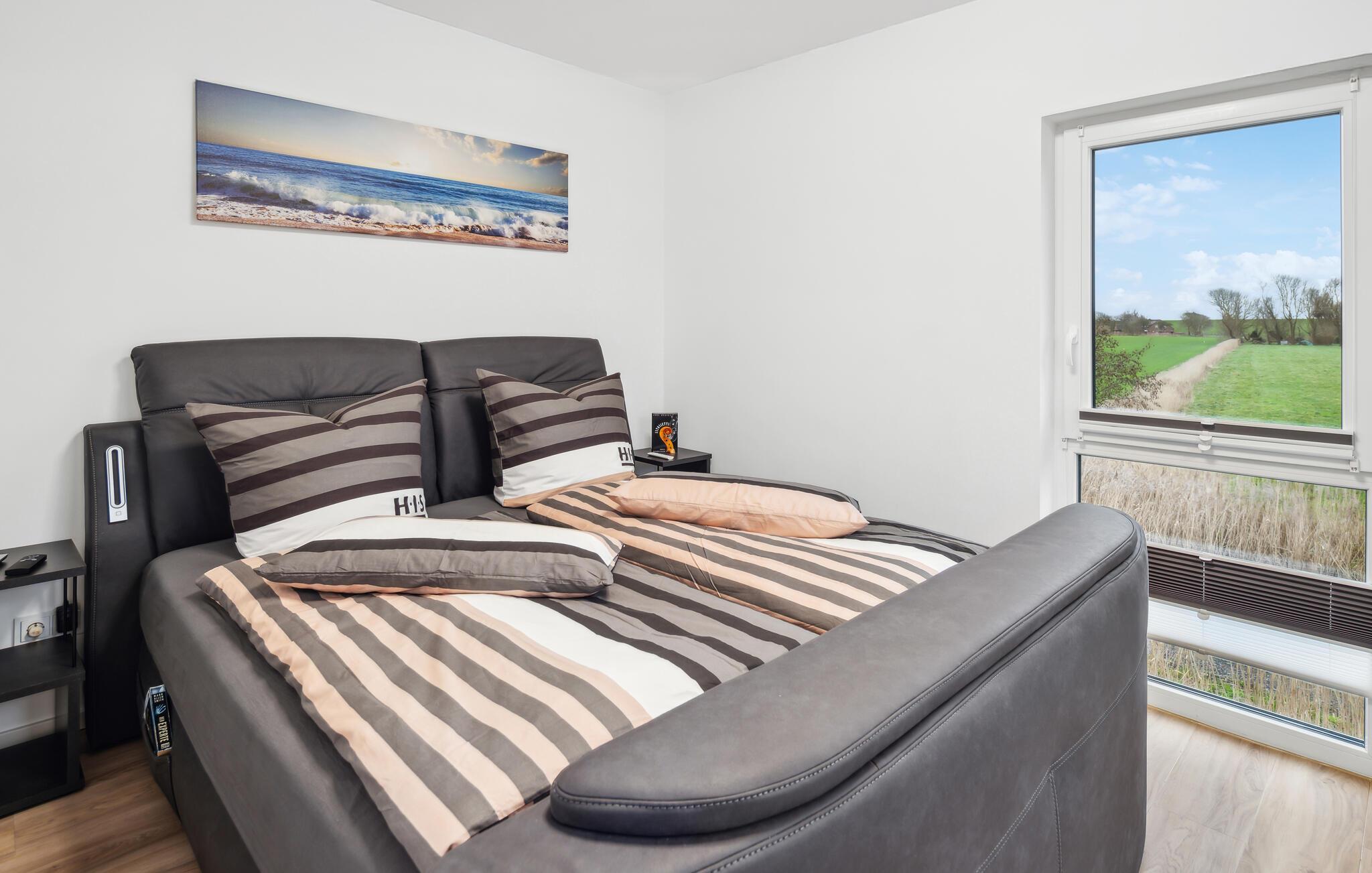 Willkommen in diesem einladenden und modernen Haus, das Sie in fantastischer Lage auf der wunderschönen Halbinsel Butjadingen und am Wattenmeer empfängt und alles für eine erholsame Auszeit mit der ganzen Familie bietet. Lassen Sie sich nach Ihren Unternehmungen und einem Saunagang auf dem bequemen Sofa mit schönem Blick ins Freie nieder, besprechen Sie die Erlebnisse des Tages und sorgen Sie mit einem Feuer im Kaminofen für eine besonders gemütliche Atmosphäre.