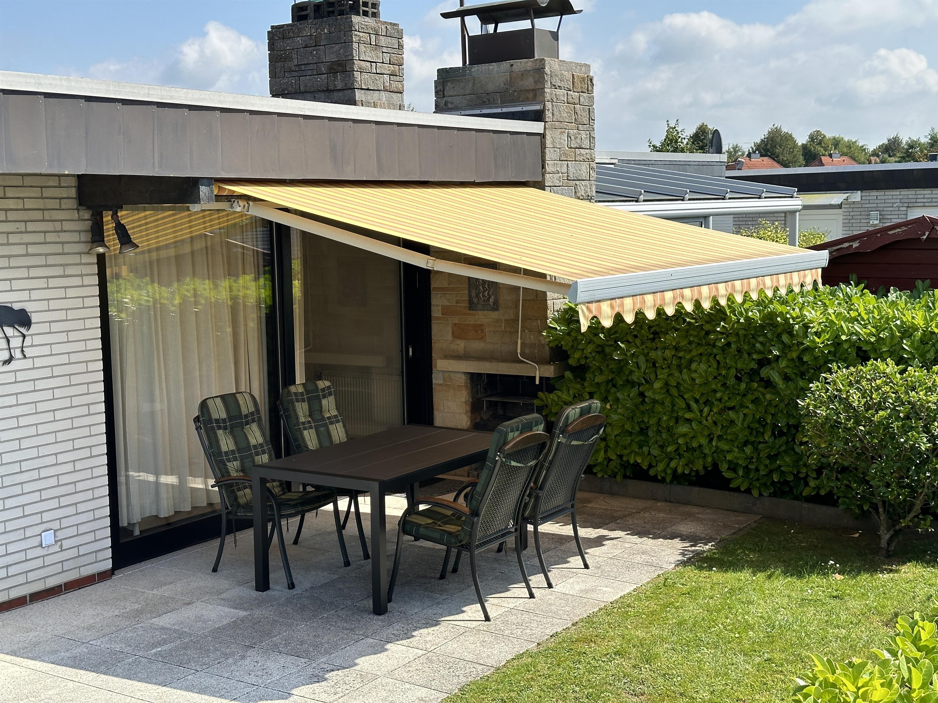 Es verfügt über ein Schlafzimmer mit Doppelbett und Kleiderschrank, ein Kinderzimmer mit Etagenbett sowie einem Einzelbett mit TV und Kleiderschrank, ein Bad mit Dusche/WC und Waschmaschine mit Trocknerfunktion sowie einen großzügigen Wohn-/Essbereich mit einer großzügigen Couch und Fernseher, einer neuwertigen, gut ausgestatteten Wohnküche (Ess- und Kochgeschirr, Backofen, Induktionskochfeld, Mikrowelle, Spülmaschine, Kühlschrank mit Gefrierfach, Wasserkocher, Toaster, Senseo-Pad und Filterkaffeemaschine). Als Wärmequelle dient eine nachgerüstete und regelmäßig gewartete Gastherme. Durch die Gasheizung ist das Haus ganzjährig bewohnbar. Eine großzügige Terrasse mit Gartenmöbeln und ein Außenkamin befinden sich auf dem ca. 200m² großen Grundstück, welches komplett eingezäunt ist und auch als Liegewiese genutzt werden kann. Zum Grillen steht Ihnen ein Außengrill zur Verfügung. Bettwäsche, Handtücher, Kinderreisebett sowie Kinderhochstuhl können gegen Gebühr bei unserer Hausverwaltung entliehen werden.