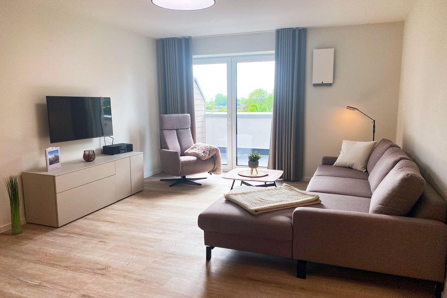 Im offenen Wohnbereich kannst du es dir auf der gemütlichen Couch bequem machen, den Tag mit einem Film ausklingen lassen oder auf dem Balkon die Nordseeluft genießen. Der große Essbereich verbindet sich mit der modernen, voll ausgestatteten Küche – perfekt für Kochabende zu zweit.