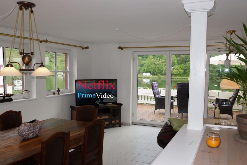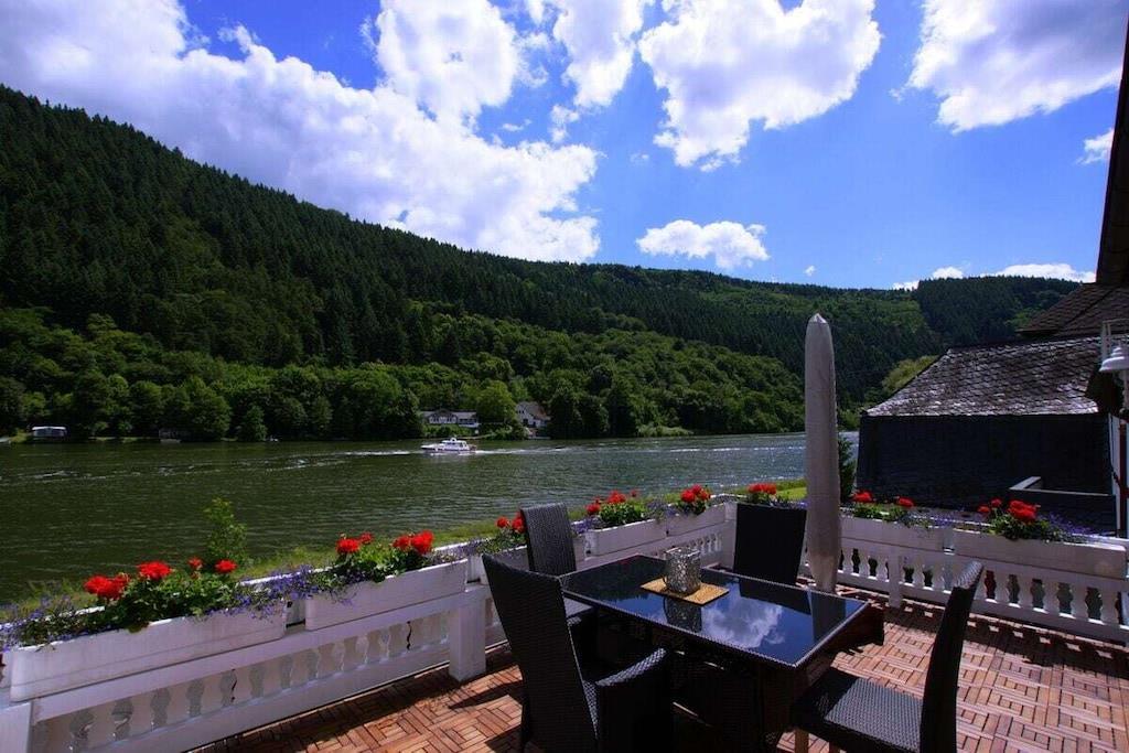 Direkt an der Mosel gelegen, liebevoll eingerichtet im Stile der Gründerzeit, inkl Pool und Sauna, exklusiv für unsere Gäste des Moseljuwels ! Wohnzimmer Chesterfield Sofas, 65Zoll Fernseher, Netflix , Amazon Prime, Ein Weinrepertoire unserer heimischen Winzer steht zu ihrer Auswahl zur Verfügung. Küche massiv Holz, Ceranfeld, Spülmaschine, Melitta one Touch Kaffeevollautomat Schlafzimmer Original-massiv natur Eichenholzmöbel aus der Gründerzeit, einstellbare Lattenroste sowie Federkern-Matratzen HighTech300 für erholsamen Schlaf. 65 Zoll Fernseher 2 Stück Touren-Fahrräder Kanus WIFI Netflix Amazon Prime Video Zattoo DSL-Flat Bootssteg FITNESSRAUM : Profigeräte, Crosstrainer, Ergometer-Sitzfahrad mit Lehne, Fitness-Turm