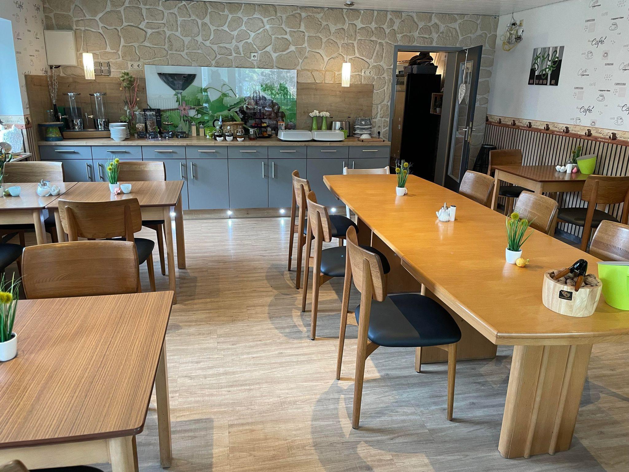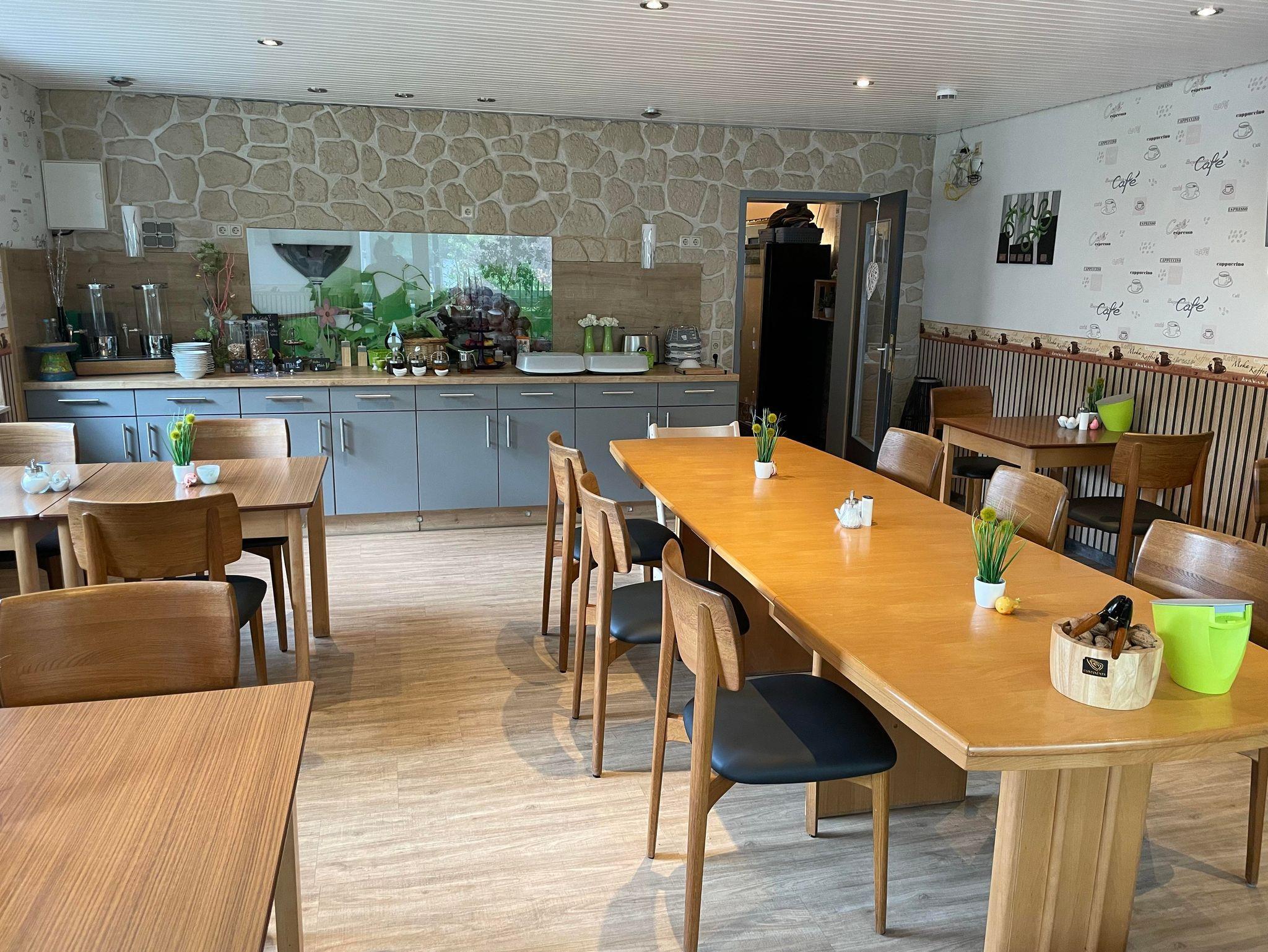 Gutes und schmackhaftes Frühstück, sichere Fahrradabstellmöglichkeit in Garage, Möglichkeit zum Erwerb von Getränken (Gästekühlschrank), schöner Frühstücksraum