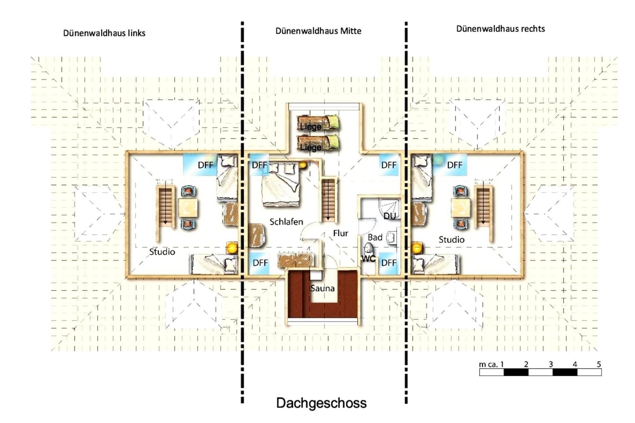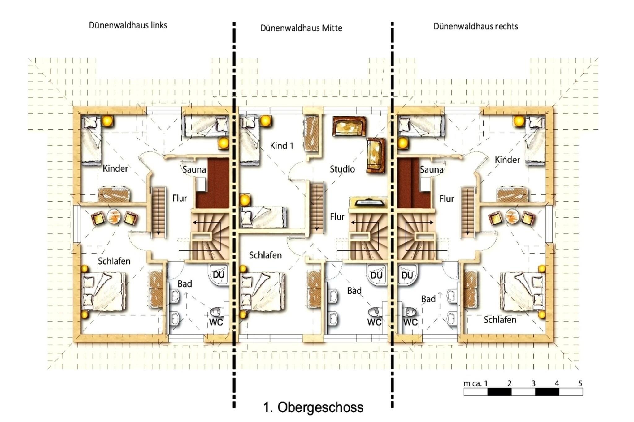 Exclusive house with 3 spacious units - just 100 m from the fine sandy beach in the dune belt directly on the coastal forest. Thanks to the gently sloping shoreline, even the little ones can splash around on the water and play in the sand. Usedom's long beach extends into Poland and is ideal for taking long walks on the beach. Highlights included: WIRELESS INTERNET ACCESS 2 free parking spaces Sauna for sole use Activities nearby: Butterfly farm 3 km. Visit the “House on the Head” near Trassenheide and feel like a fly on the ceiling. Discover the house full of surprises, fun for the whole family is guaranteed! There is also a lot to experience in the Trassenheide children's area: whether it's a carousel, a children's railway, a western train, one of the many bouncy castles, a sleigh slide or a trampoline, which you can use to your heart's content at no extra charge. Everyone will find something to their taste here! Huge Lego bricks and a spacious fitness area with lots of sports equipment are also included. While the grown-ups enjoy a cup of coffee, the little ones can let off steam on the super-large new air cushion ball. Scooter cars and motorcycles as well as electric excavators and mini golf are available for a small additional charge.