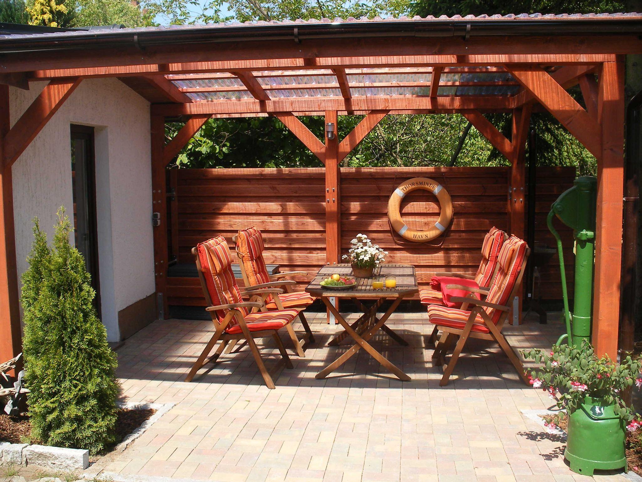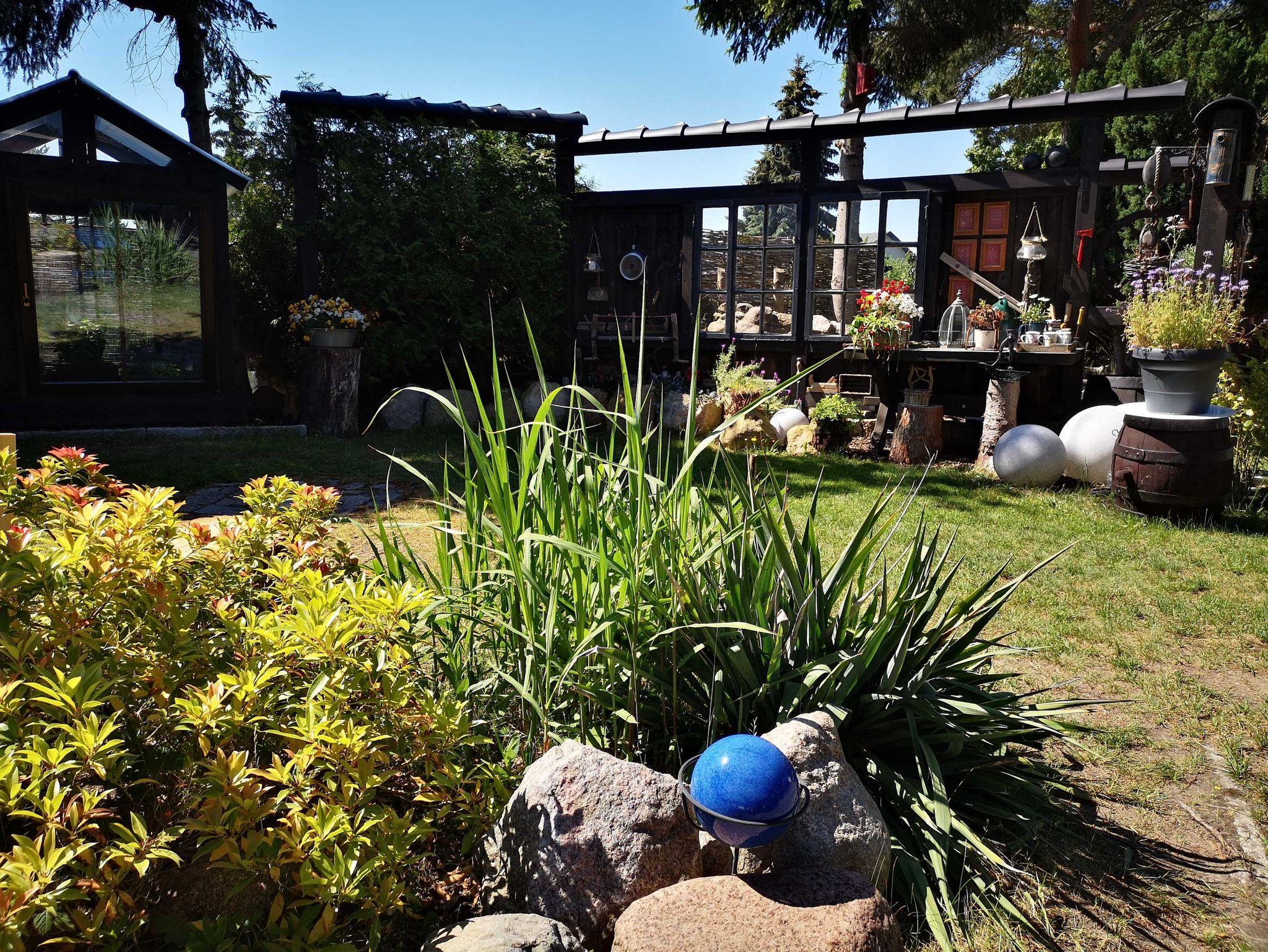 Sie können auf unserem eingezäunten von Bäumen umgebenen Grundstück zur passiven Erholung eine überdachte Terrasse eine Partyhütte mit Grill und Relaxstühlen gerne nutzen.Für unsere kl. Gäste ist ein Spielboot mit Spielzeug sowie eine Schaukel und Wippe vorhanden .