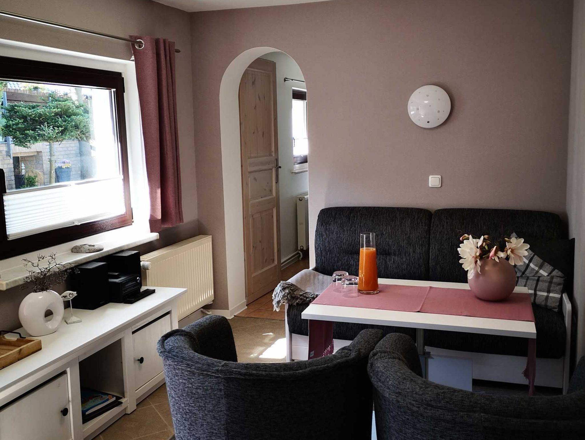 Sie wohnen in unserem 40 m² großem gemütlich eingerichteten Ferienhaus und können dort ein Schlafzimmer mit Doppelbett, ein Wohnzimmer mit Flachbildschirm und Stereoanlage nutzen. Im Wohnzimmer kann die Couch als Bett für 2 Personen schnell umgebaut werden. Durch einen kleinen Flur gehen Sie zum Bad mit Dusche und WC . Im hinteren Teil des Flurs befindet sich eine kleine komplett eingerichtete Küche.Von der Küche aus gelangen Sie zu der neuen überdachten Terrasse.Diese lädt zum Essen ,Grillen oder nur zum Relaxen ein. Von dort aus ist für Frühaufsteher der Sonnenaufgang zu beobachten.